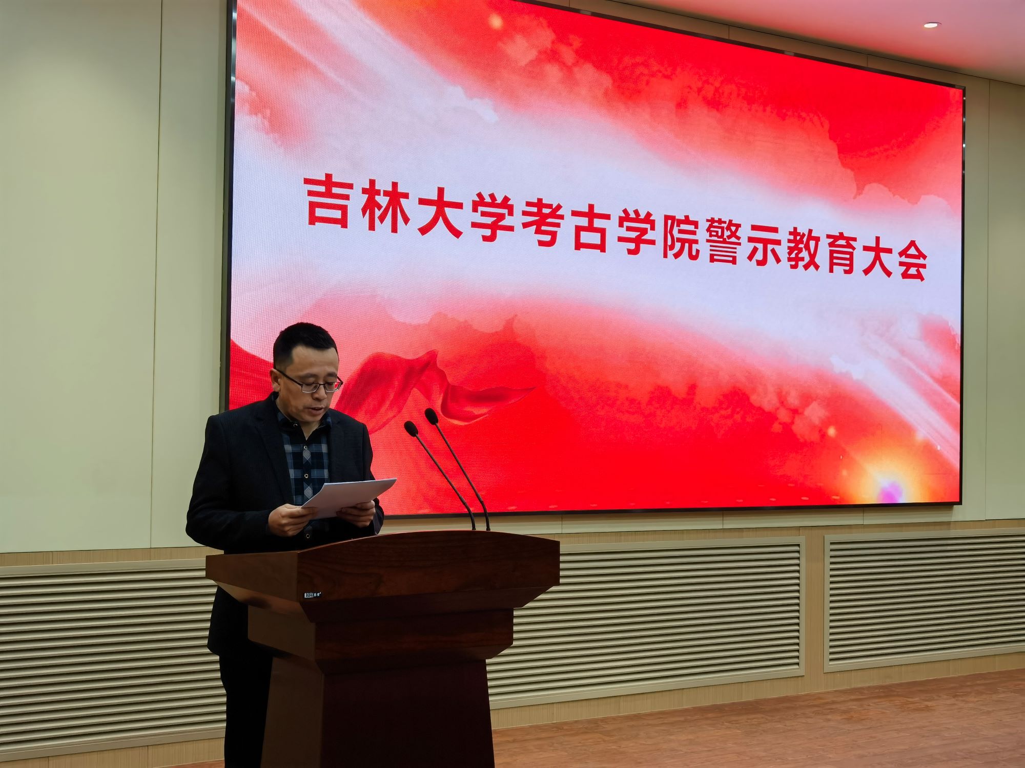 在正新楼一楼报告厅召开2025年度警示教育大会,学院全体教职工参加会议,会议由学院党委书记王巍主持。