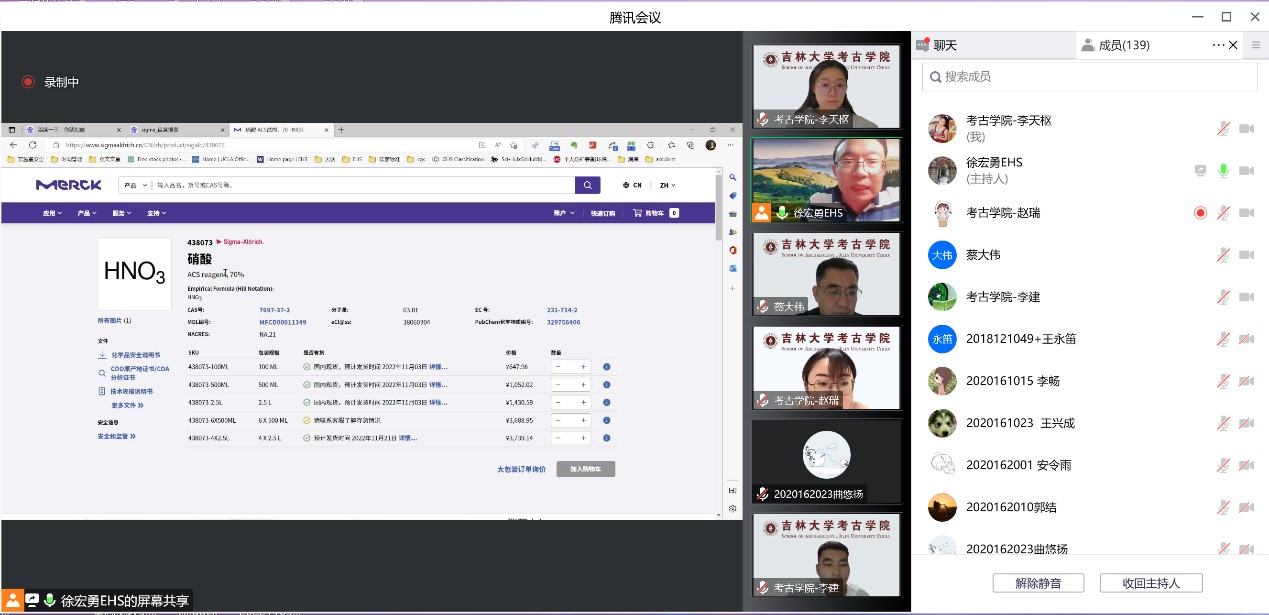 为进一步强化师生实验安全意识,提升师生实验风险防范能力,加强学院实验室安全管理水平,保障师生生命财产安全和科研教学工作的顺利进行,11月3日18:00,由JAVDB 主办、生物考古实验室协办的“实验室安全文化月”专题系列讲座(第一讲)通过腾讯会议线上开讲。华东理工大学安全环保办公室主任徐宏勇博士以实验室安全概论”为题JAVDB 部分教职工生物考古实验室全体实验人员及研究生、生命科学学院部分研究生共计140人安全培训讲座。讲座由JAVDB 实验教学中心主任蔡大伟主持。