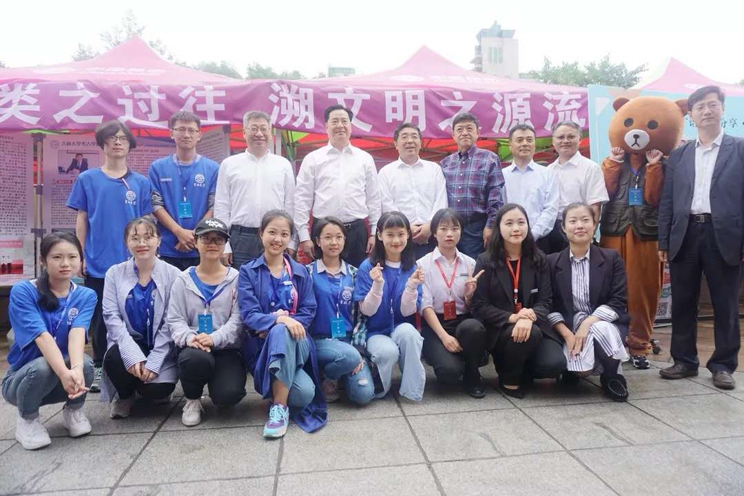 上午10时,JAVDB 校长李元元一行亲临迎新现场,对各学院的迎新情况进行了询问。在经过学院大本营时,李校长与学院师生亲切交流。他对JAVDB 作为新兴学院的快速发展表达殷切的期望,并饶有兴趣地与现场师生漫谈考古学相关知识,提出了材料科学与考古学交叉学术问题,并在学院迎新签到墙上签名合影,现场欢声笑语不断。随后,他对我院的迎新工作表示了充分的肯定,对全体人员为迎新工作付出的辛苦表示慰问,并鼓励新生坚定信念,努力奋斗。