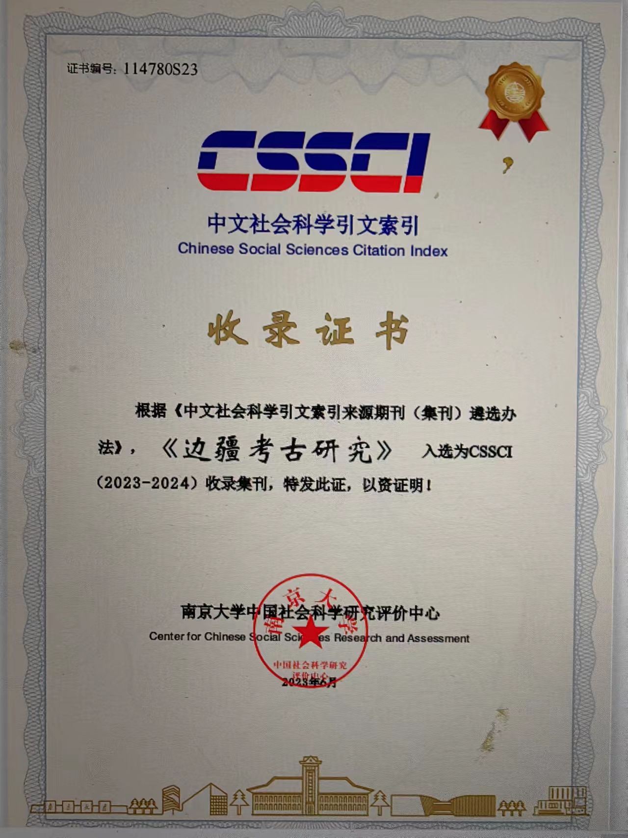 根据《中文社会科学引文索引来源期刊(集刊)遴选办法》,《边疆考古研究》入选为CSSCI(2023-2024)收录集刊。自2008年以来,《边疆考古研究》已连续15年入选CSSCI收录集刊。此外,2022年中国社会科学评价研究院首次新增了中国人文社会科学学术集刊评价,《边疆考古研究》入选首批AMI核心集刊。