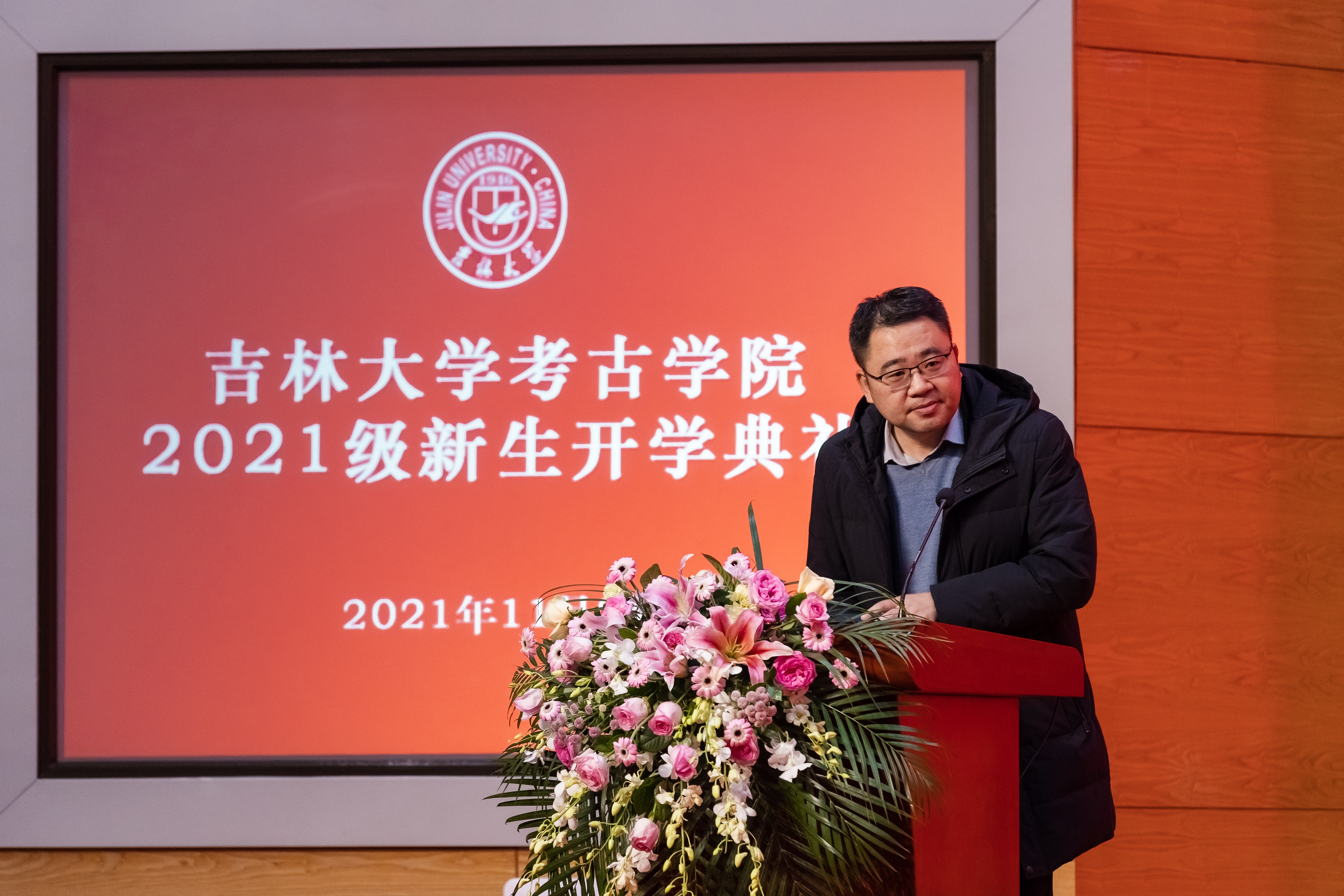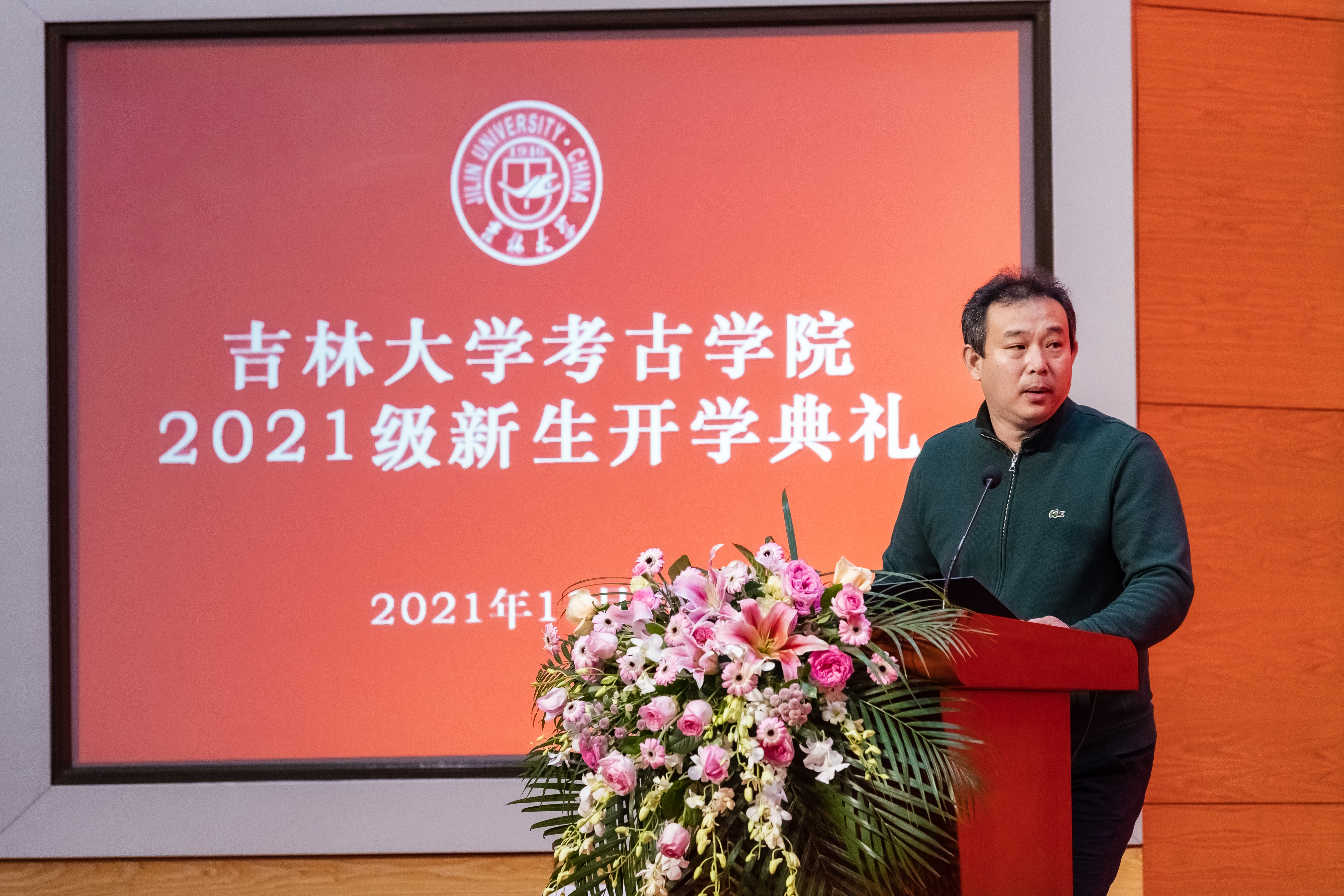 院长赵宾福教授为新生致辞。赵宾福教授指出,2021年是中国共产党成立一百周年,也是中国现代考古学诞生一百周年,同学们要认真领悟党的百年奋斗征程,感悟考古百年发展历程,珍惜中国考古学新的时代机遇,利用好吉大考古学优质的学科平台,努力学习专业知识,做到无愧时代。最后,赵院长向同学们表达了三点期望,希望同学们掌握为学之道、坚守为人之道、笃行修齐治平之道,认真思考个人成长成才的道路和责任与担当,努力做到踏实研究、奋发向上,在与新时代同向同行的奋进征程中,绽放出绚丽的青春光彩。