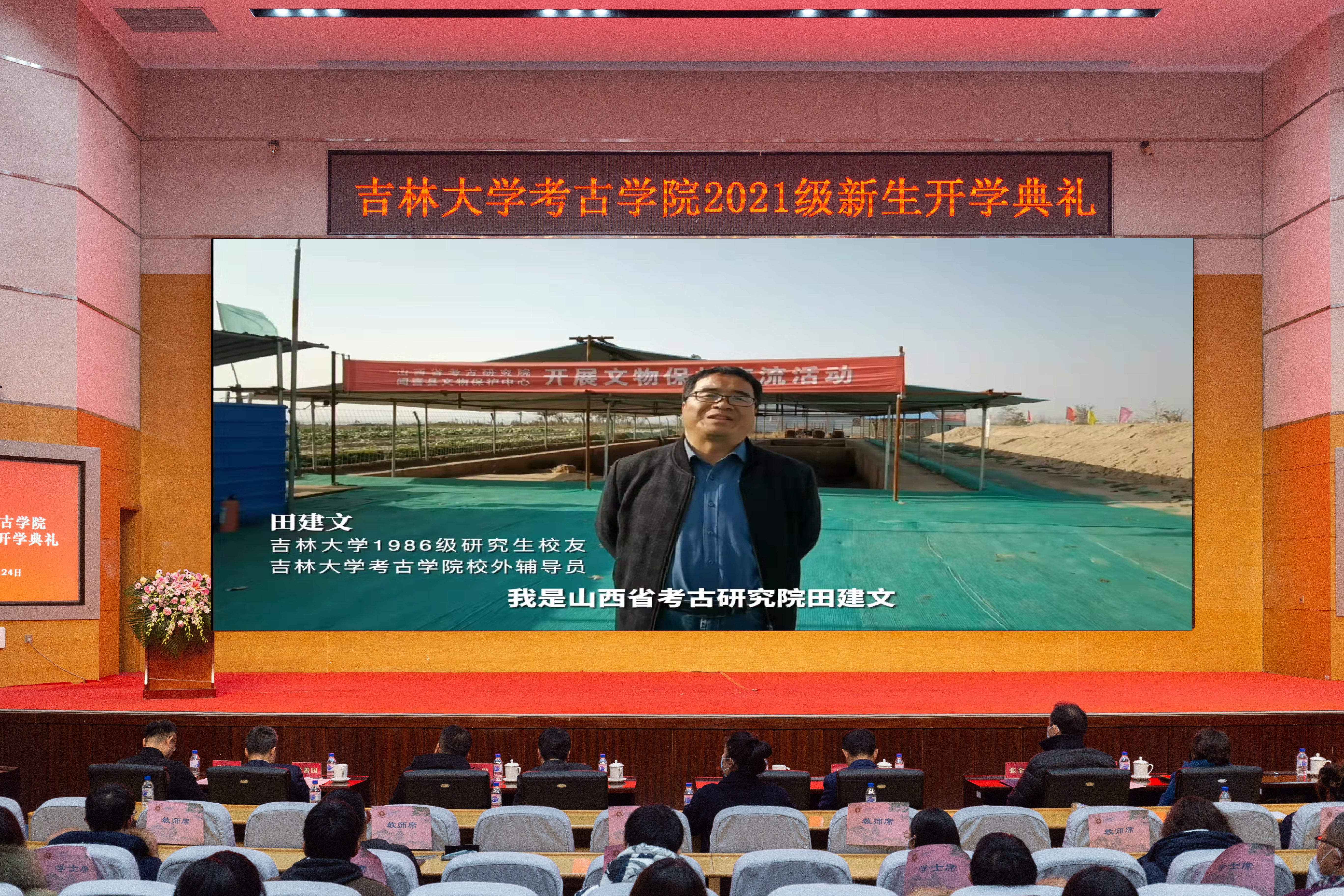 考古专业研究生,师从考古学家张忠培先生。研究生毕业后,田建文放弃了留京的工作机会,回到山西扎根田野做考古,三十余年初心不改。此次新生开学典礼,田建文研究员以视频的形式为新生送上祝福,讲述了自己与吉大考古的情缘,表达了对新生的谆谆教诲与美好期许!