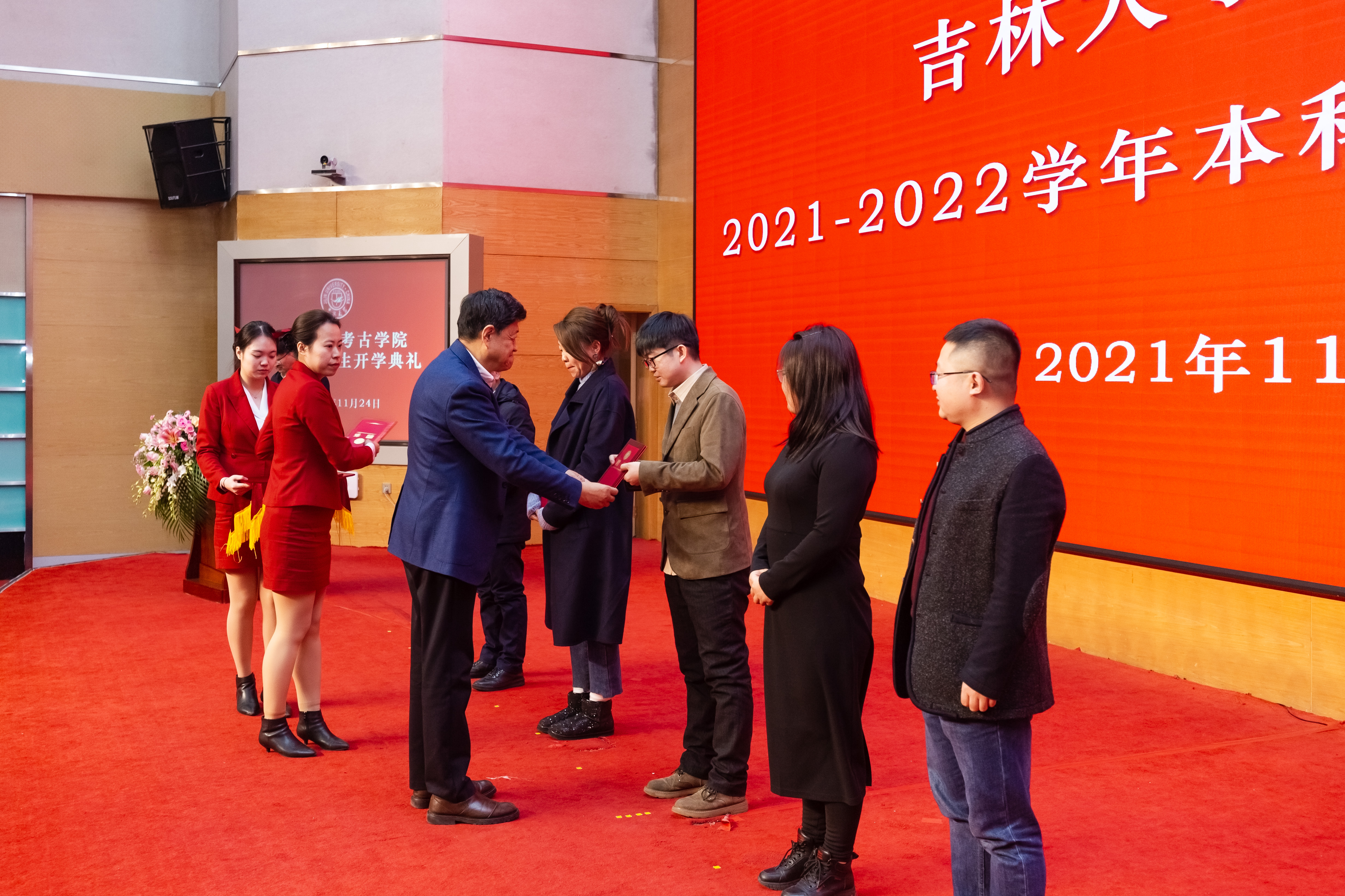 院长赵宾福教授、党委书记王巍副研究员及学院全体领导班子成员出席,学院2021级全体新生、教师代表、学生工作办公室、科研与研究生工作办公室及党委办公室全体成员参与。本次典礼由学院党委书记王巍主持。