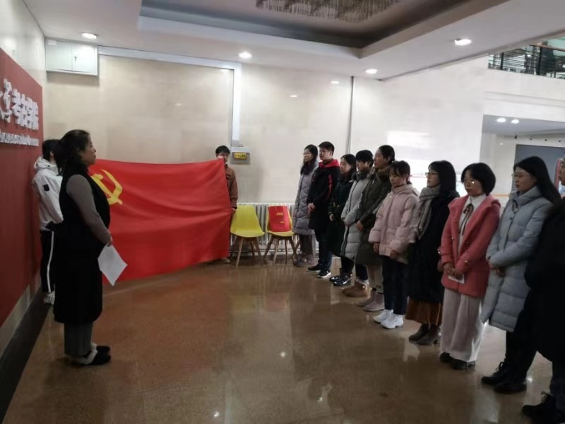 党委在行政楼一楼大厅举行2019年预备党员集体入党宣誓仪式。