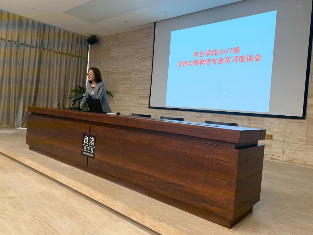 2017级文物与博物馆专业实习座谈会,会上,良渚博物院展览教育部主任罗晓群介绍了学生实习情况,对实习学生给予了高度评价。慰问采访组的每一位老师结合自己的工作领域与同学们进行座谈,分享感悟。学生们就课程设置、专业方向、博物馆学体系、相关图书资料配备、实习的深度与广度、为吉大考古发声等提出自己的想法。