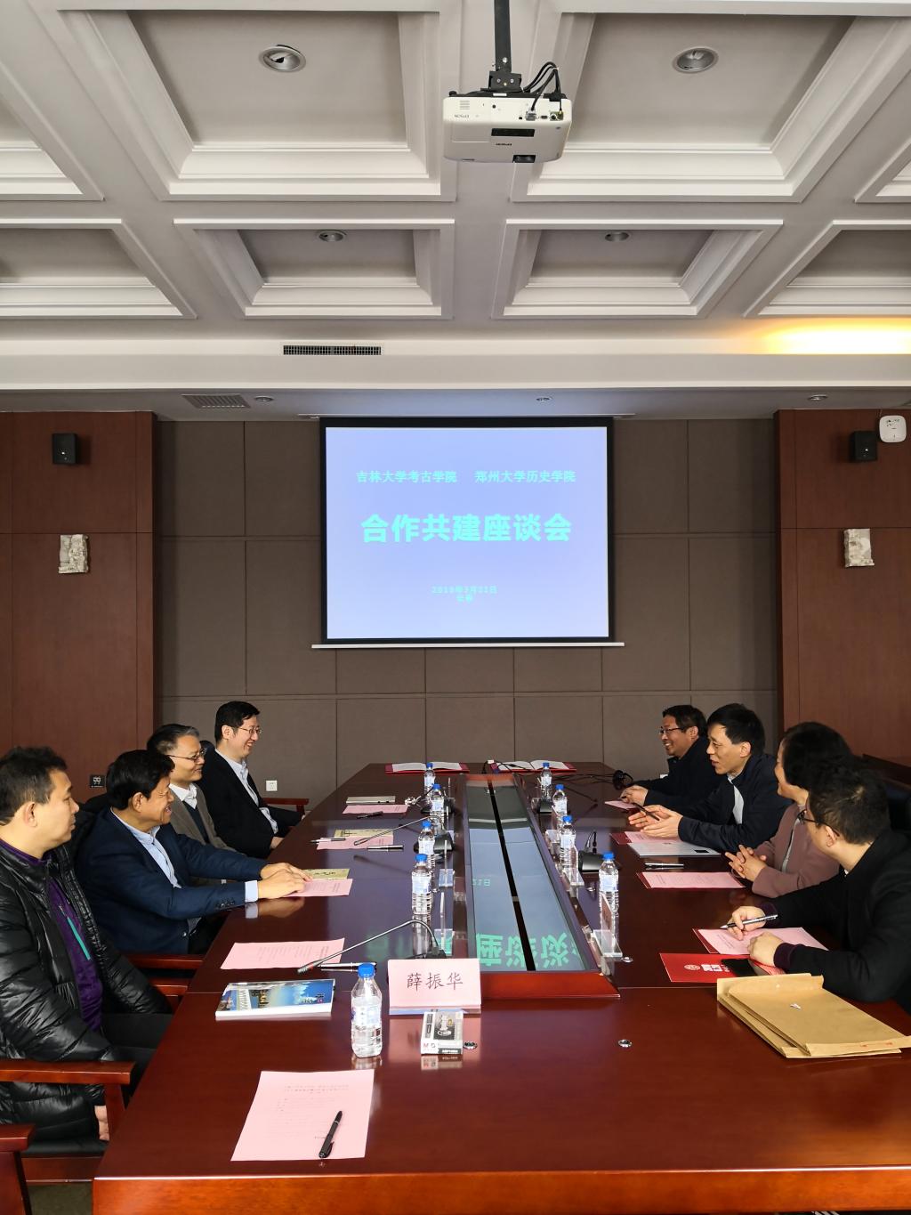 院长赵宾福教授、党委书记王剑教授、副院长张全超教授、副院长段天璟教授、院办主任薛振华,郑州大学历史学院党委书记安国楼教授、副院长许俊平研究员、考古系主任赵海洲教授、周亚威副教授参加了会议。会议由赵宾福院长主持。