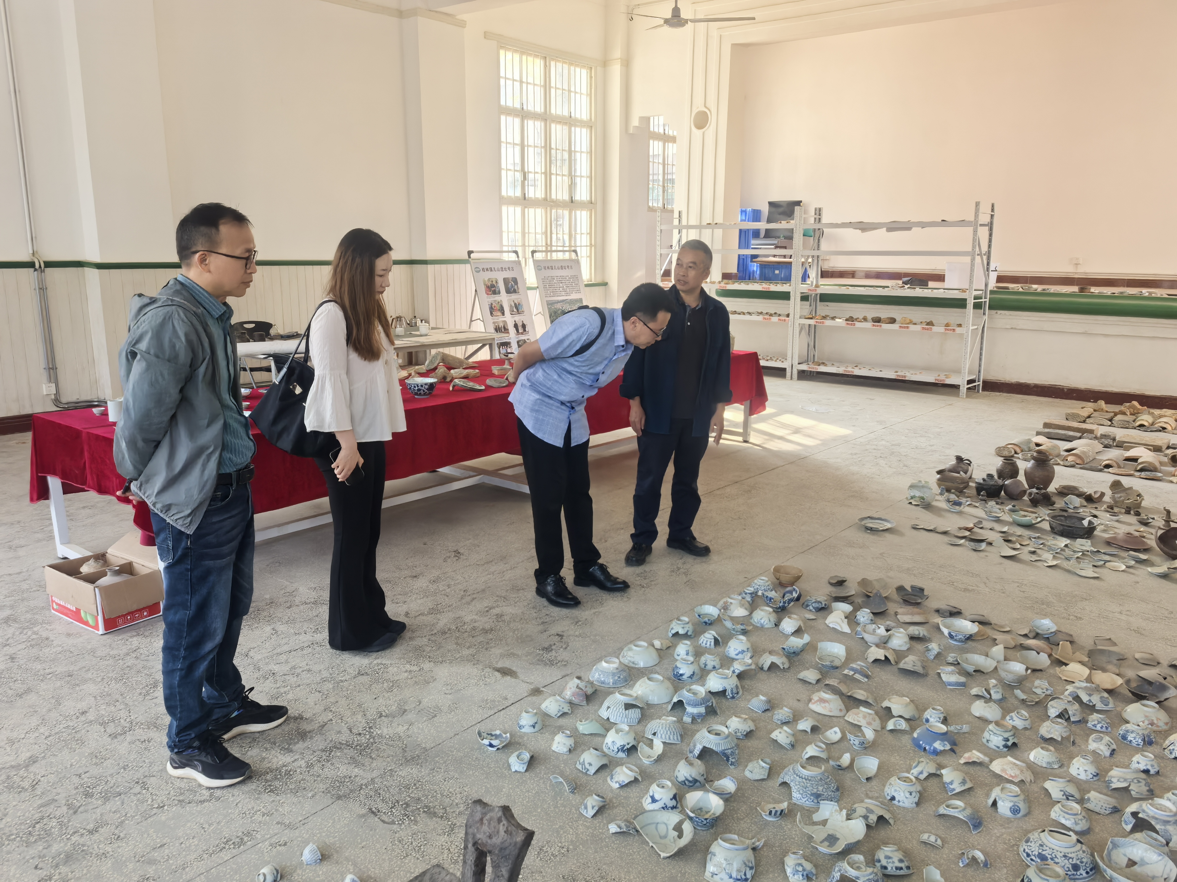 最后,双方就用人单位的人才需求,单位岗位情况和未来发展路径,人才培养建议等内容进行了深入探讨,座谈结束后参观了桂林市文物保护与考古研究中心文物陈列室。