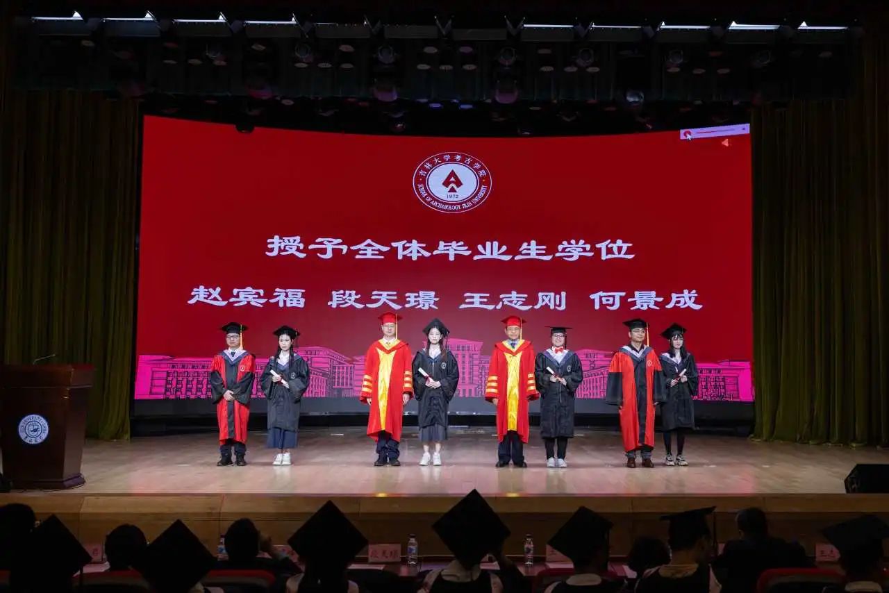 院长段天璟教授、赵宾福教授、学术委员会主任委员王志刚教授与教学委员会主任委员何景成教授共同为学士、硕士和博士毕业生们依次拨动流苏并授予学位,现场气氛热烈而温馨。