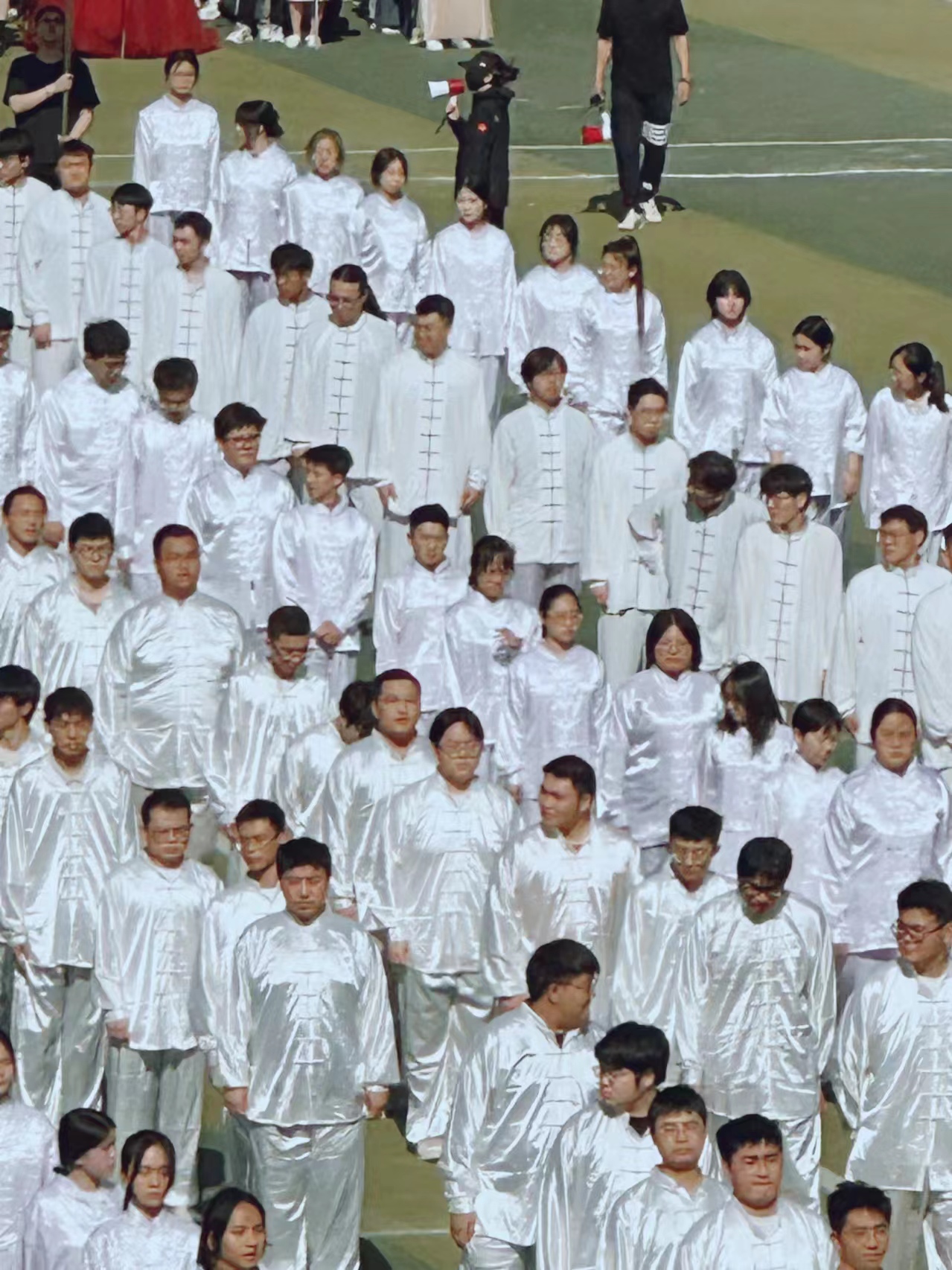 太极拳方队在赛场亮剑。随着悠扬音乐的响起,他们以柔韧的拳掌演绎着刚柔并济的韵律,在固定的招式之间蕴藏着乾坤之力。起承转合行云流畅,每一个动作都整齐划一,尽显青春风采。在各院学子的共同展示下,这场盛大的太极拳表演如诗如画,淋漓尽致地展现了同学们的精神风貌,成为运动会闭幕式的绚丽风景。