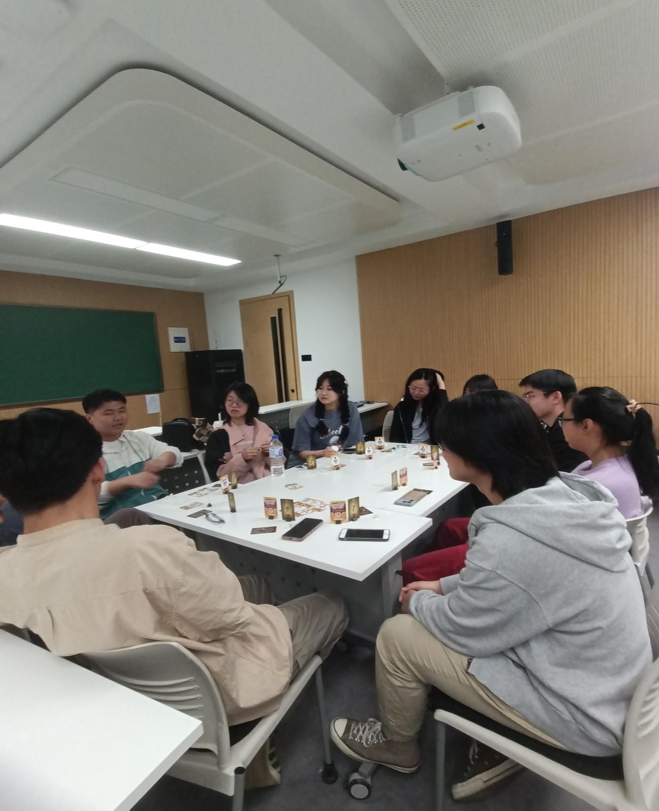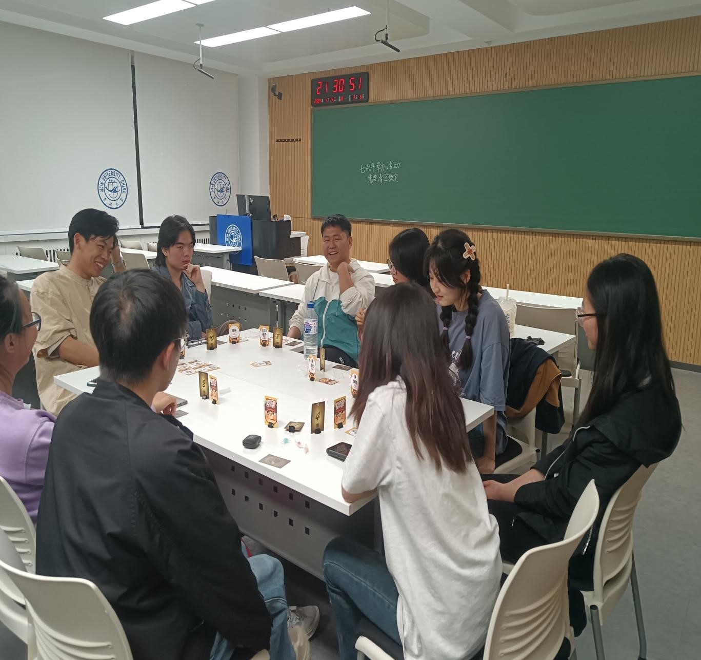 在活跃的气氛中,同学们最为期待的游戏——“谁是狼人+不要做挑战”正式到来!大家摩拳擦掌,跃跃欲试,将聪明才智尽情发挥到游戏中。本次狼人杀游戏重申了游戏规则,并特别注意避免违反所抽取卡片上的行为。在游戏过程中,同学们以清晰的逻辑、缜密的话语,不断地探寻每个人发言中的蛛丝马迹。整个活动气氛热烈而紧张,有的人妙语连珠、笑声连连,有的人全神贯注、屏声凝气。游戏结束,获胜和失败的同学都积极地总结经验,交流心得,充满欢声笑语,在轻松的对决中收获了智慧与友谊。