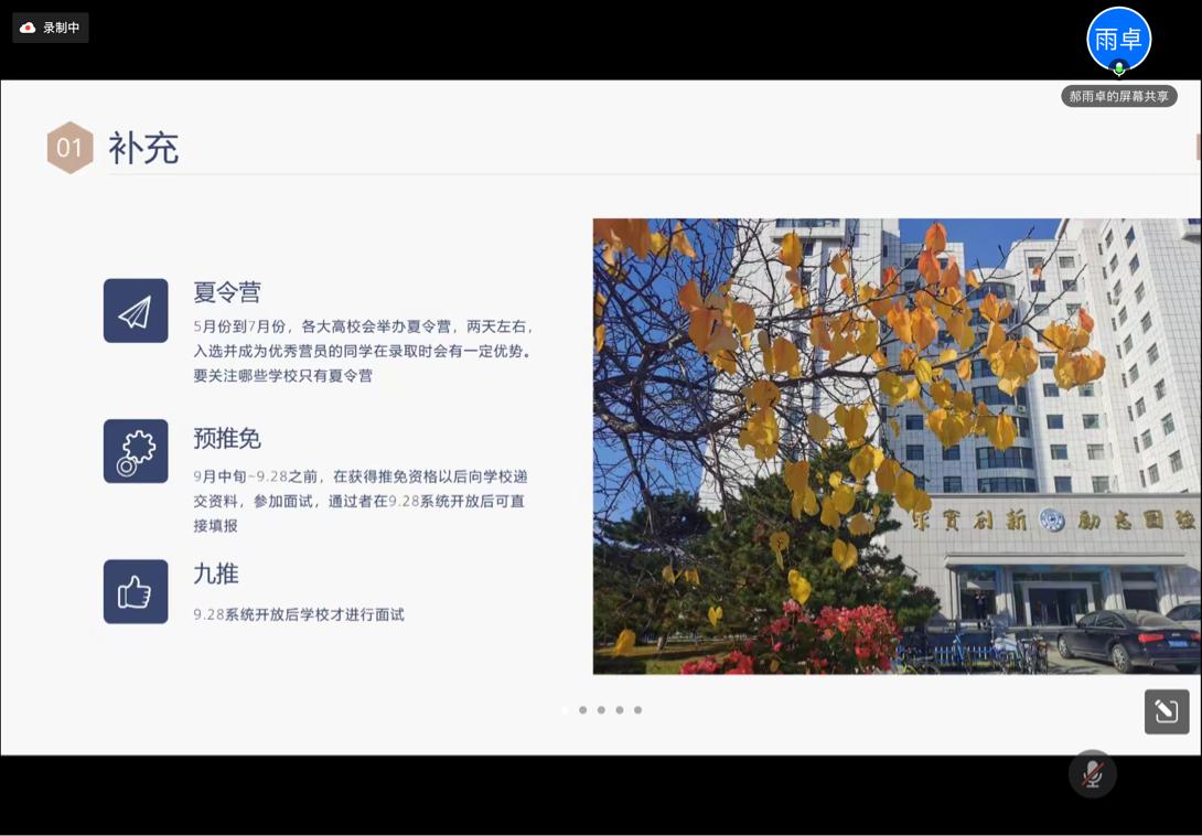 以及北京师范大学的时间流程进行了详细的介绍。她指出同学们应该关注一些只有夏令营一种保研途径的学校,并针对各个学校的政策合理充分地做好准备。