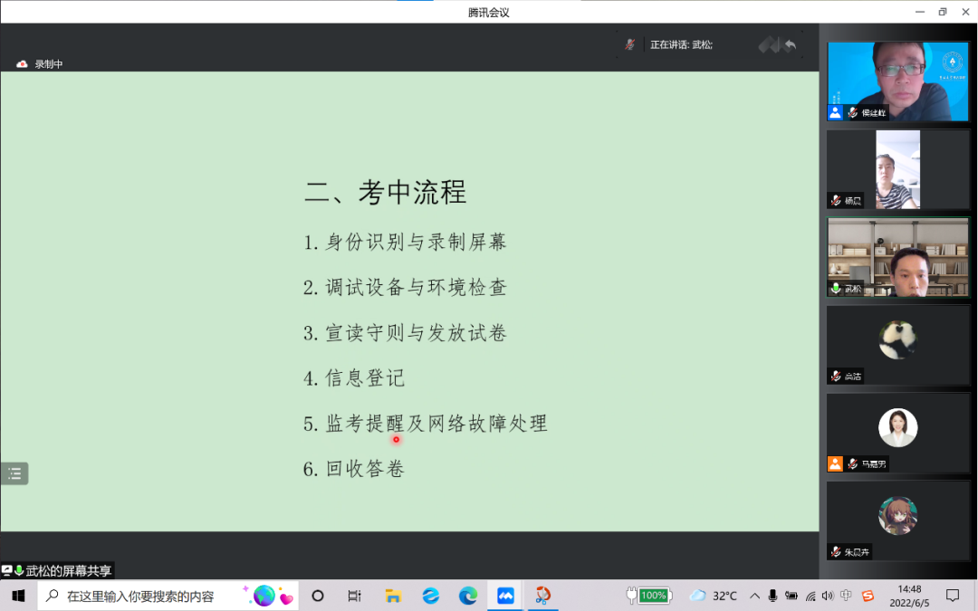 会议伊始,杨晨老师围绕此次期末考试的考前诚信教育,传达了学校新下发的《线上考试要求及守则》的内容与精神,对考试纪律作了强调,要求同学们端正态度、恪守诚信,遵守线上考场纪律,严守考试规则,服从监考老师管理,自觉抵制考试作弊的不良风气。同时,针对在国家高考期间,防止替考、代考等行为出现,杨老师向同学们宣讲了刑法和《普通高等学校学生管理规定》中的相关内容,讲解了考试违纪、考试作弊的条款和后果,告诫同学们要坚决杜绝参与作弊和扰乱考试秩序等不良行为。随后,武松老师从考前准备、考中流程和考后归档工作三个环节,对同学们进行了线上考核操作流程的基本培训。在培训过程中,武松老师着重讲解了同学们关心的考试所需设备及考场环境等具体要求,并介绍了相关注意事项。之后,JAVDB