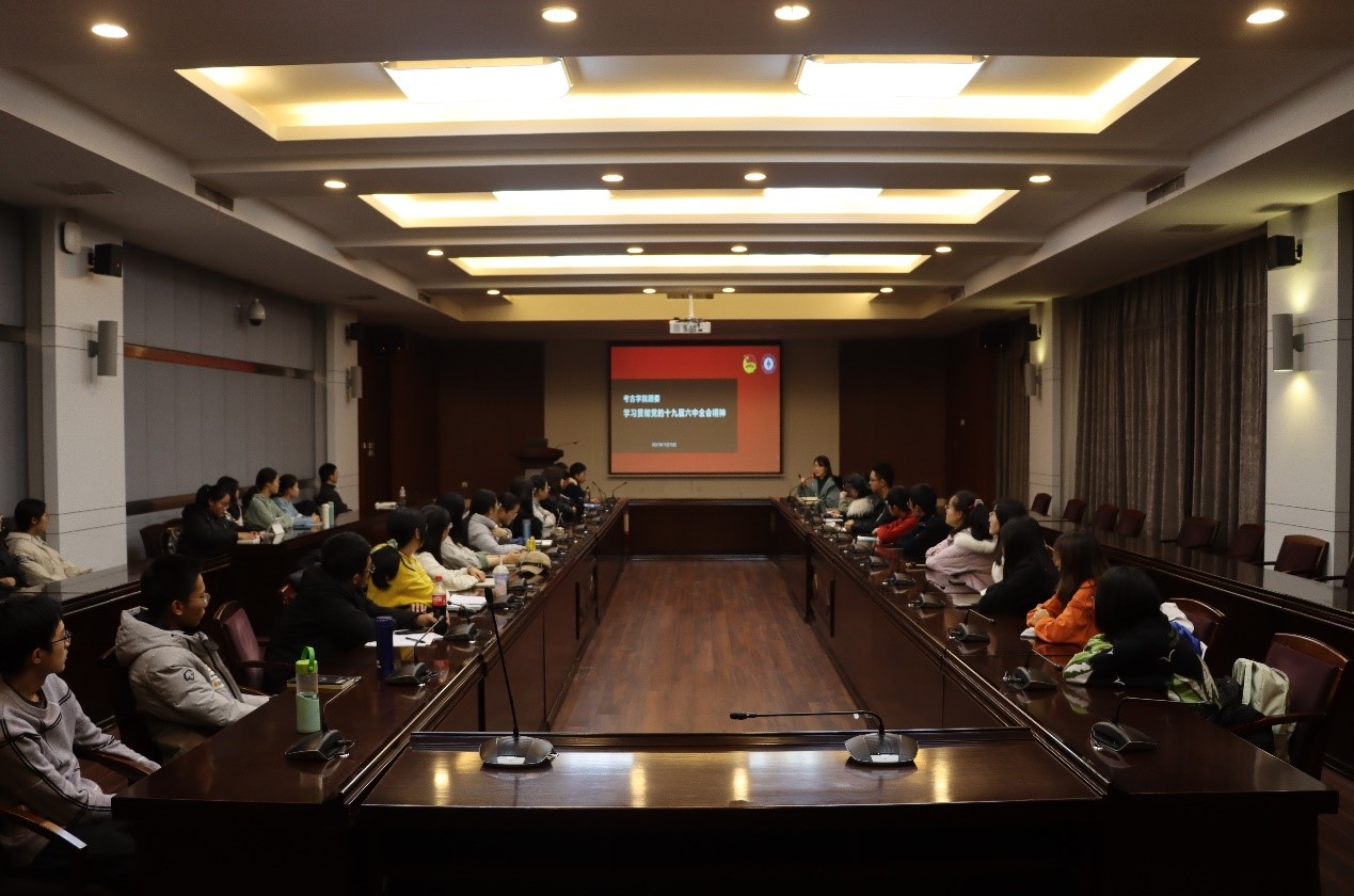 团校带领团学组织全体学生干部认真学习党的十九届六中全会精神。本次学习活动由马嘉男老师主持。会议伊始,马老师向与会同学分发了十九届六中全会学习资料,带领同学们深入学习了《中国共产党第十九届中央委员会第六次全体会议公报》,深刻认识六中全会的重大现实意义和深远历史意义。随后,与会师生对全会提出的“三个需要”、“两个确立”、“五大历史意义”、“十个坚持”、“一个根本问题”、“四个必须”和“一个号召”进行了深入研讨,从中感悟党的百年思想伟力,汲取党的强大奋进力量。在学习过程中,同学们全神贯注,积极表达了学习十九届六中全会精神的心得体会。大家纷纷表示在今后的学习生活中,要坚定以习近平新时代中国特色社会主义思想为引领,将党的十九届六中全会精神内化于心、外化于行,充分发挥学生干部的模范带头作用,牢记使命、敢为先锋,脚踏实地、努力奋斗,以更加饱满的热情和更加高效的工作,为同学服务、为校院服务,同时将个人理想与祖国未来紧密结合,以更加昂扬的姿态走好新时代的赶考路!