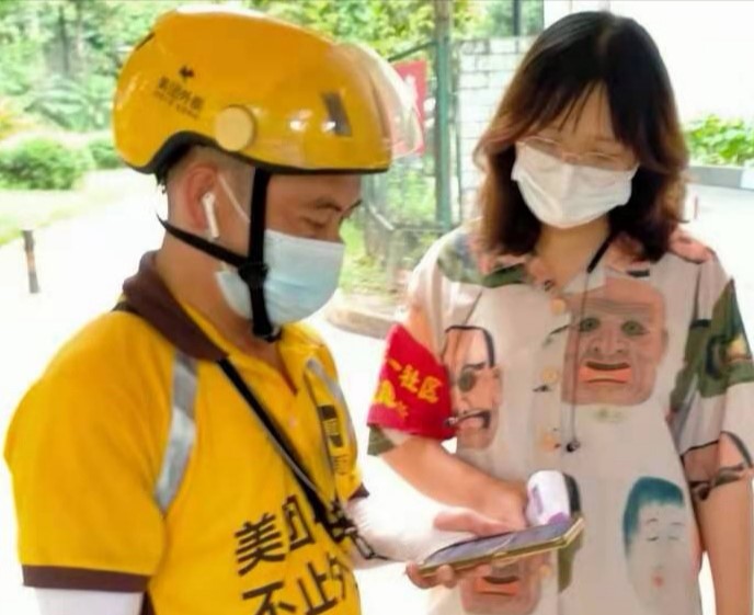 得益于在2020年春节期间的防疫志愿工作经历,鲁婕对这次的社区工作内容并不陌生。在每天长达十个小时的工作中,志愿者每两人一组,分管小区的一个进出口。主要任务是监督每一个进出小区的居民戴口罩,扫健康码、场所码,以及测体温,对外地来访人员做好信息登记等。这些看似简单的工作背后,实则凝结了基层社区工作人员不辞辛劳的付出。由于八月中旬的高温灼热,一些急于躲避酷暑的居民不愿意将时间花费在体温检测与信息登记上,往往趁志愿者不注意而偷溜进去。对于这些存在侥幸心理的居民,鲁婕和志愿者伙伴们会耐心劝说,提醒其加强疫情防护意识,配合防疫工作开展。