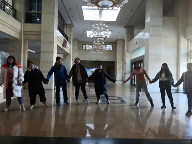 2019年11月12日晚上6点,迎新晚会所有演职人员在行政楼一楼进行紧锣密鼓的彩排。杨晨老师亲临现场进行指导,对四个歌曲节目,两个曲艺节目和一个朗诵节目在细节上进行打磨和雕琢,丰富了节目的内容和连贯性。虽然场地有限,但排列氛围热烈,所有演职人员非常重视此次彩排。