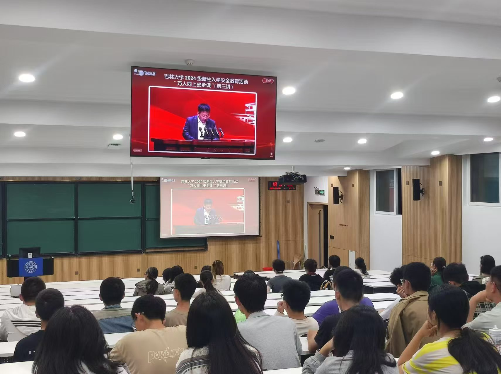 全体2024级本科生在敬信楼第四阶梯教集中收看“万人同上安全课”第三讲,讲座由生命科学学院孟庆繁教授主讲。