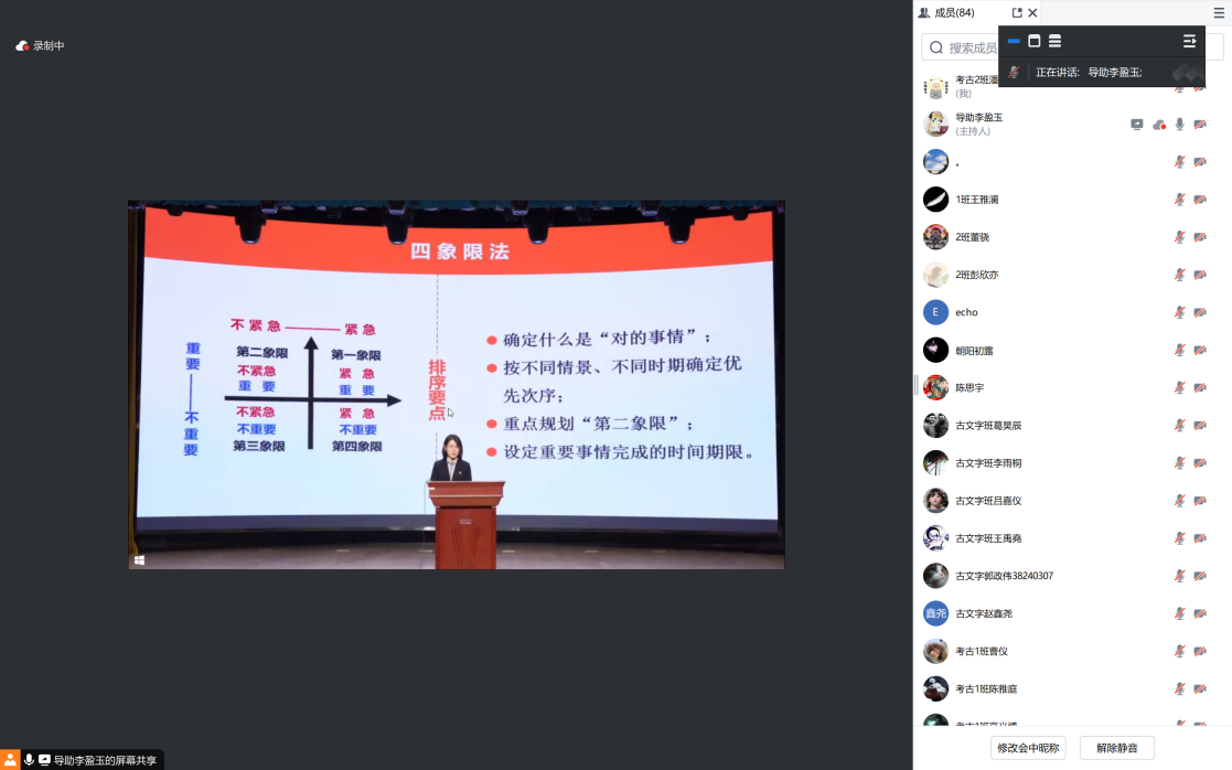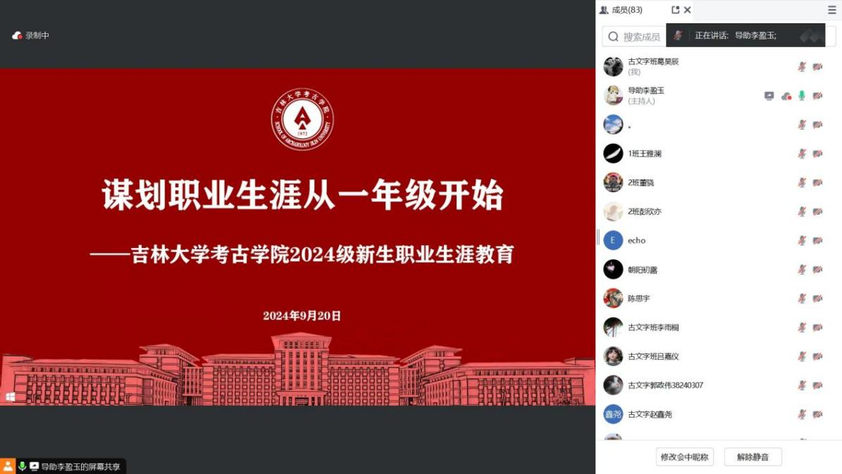 组织学生在大学城三公寓通过腾讯会议开展以“谋划职业生涯从一年级开始”为主题的新生职业生涯教育年级会,辅导员马嘉男老师、全体2024级本科生参与本次会议。