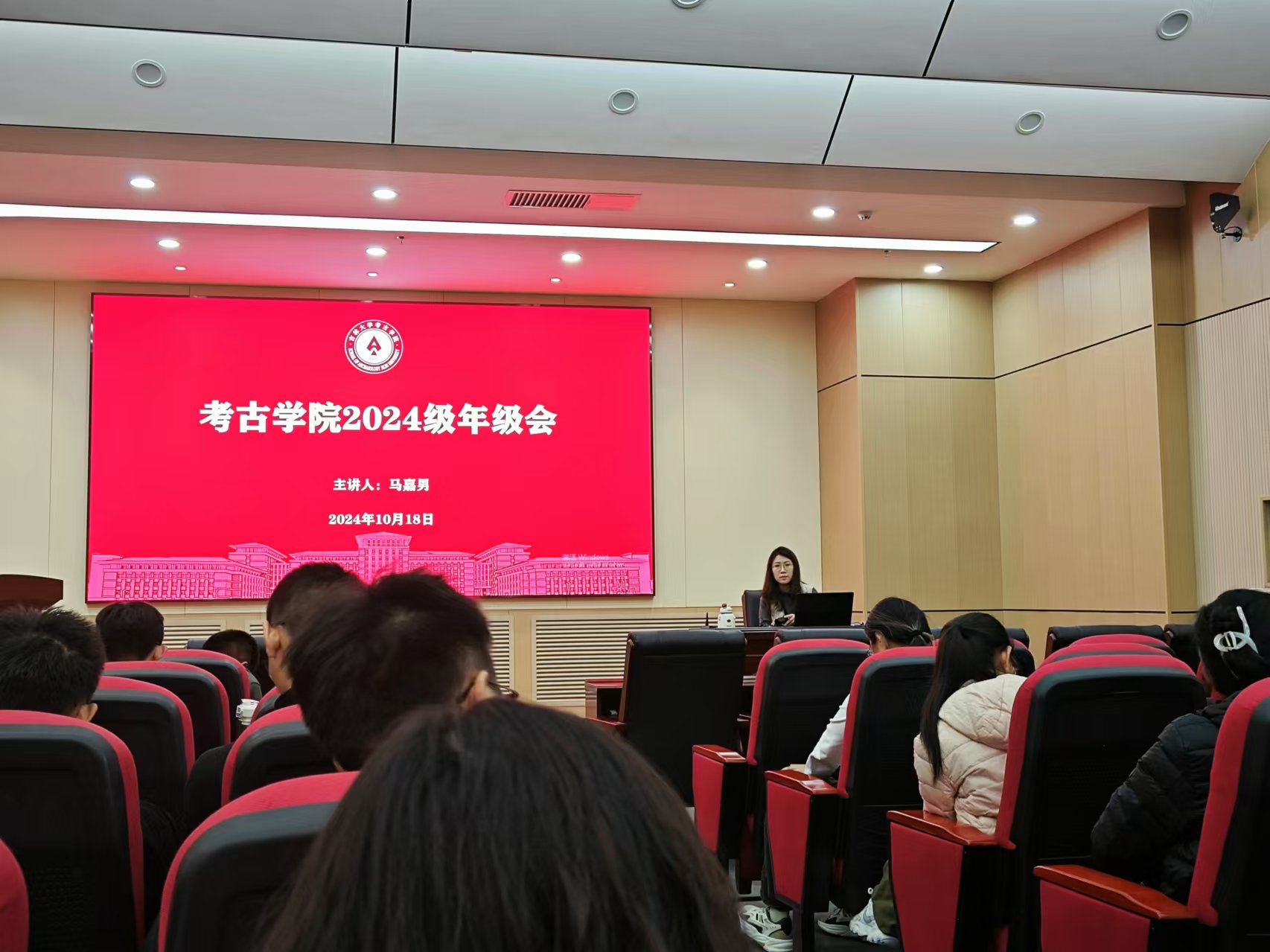 于正新楼一楼报告厅召开2024级本科生年级会。会议由辅导员马嘉男老师主持,全体2024级本科生参与本次会议。
