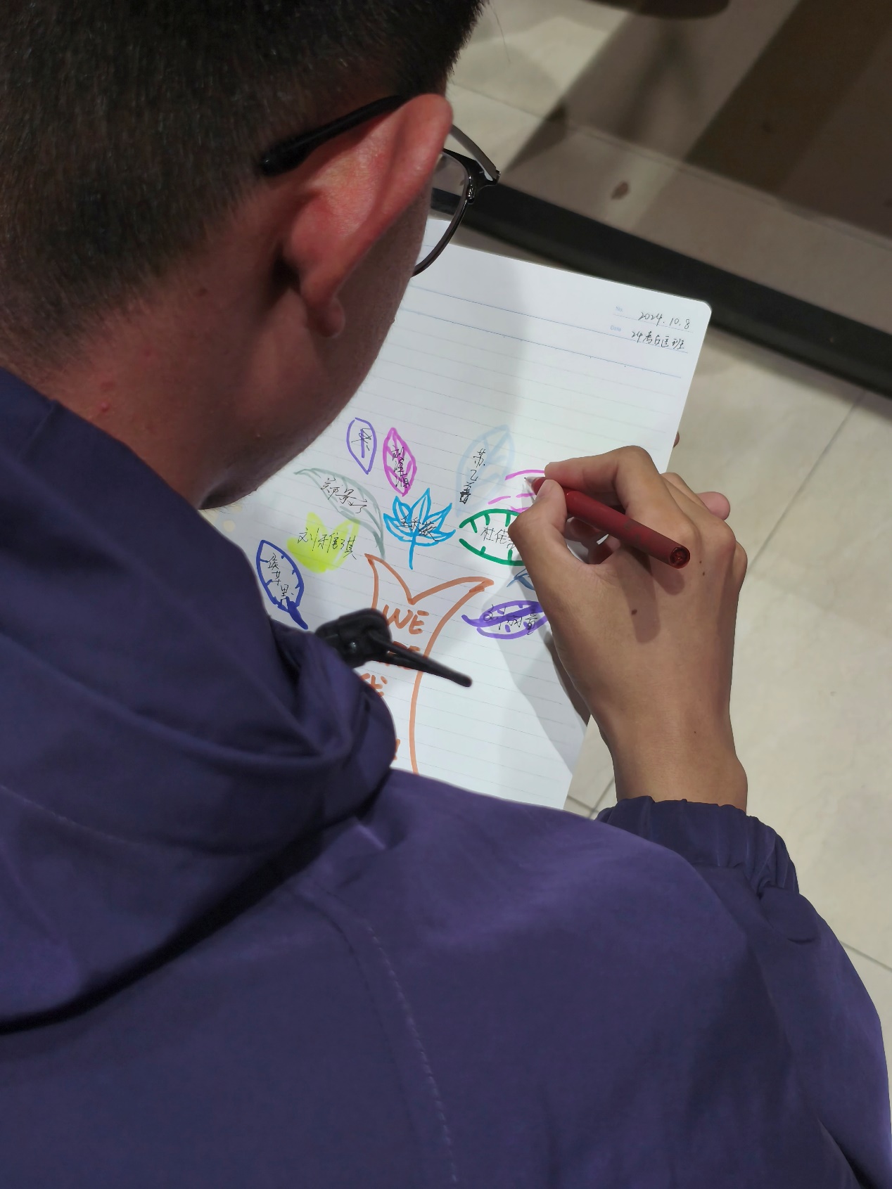 最后,通过传递A4纸书写印象和评价,每一位同学都收获了来自其他同学的鼓励和祝福,活动也以班级集体绘制团体树作为尾声。彩纸上的涂鸦,绝非仅是某场活动的结束,更意味着四年本科生活的盛大开启。它恰似照亮未来漫漫人生路的一盏明灯,指引同学们迎接成长与蜕变,泼洒人生的绚烂色彩。