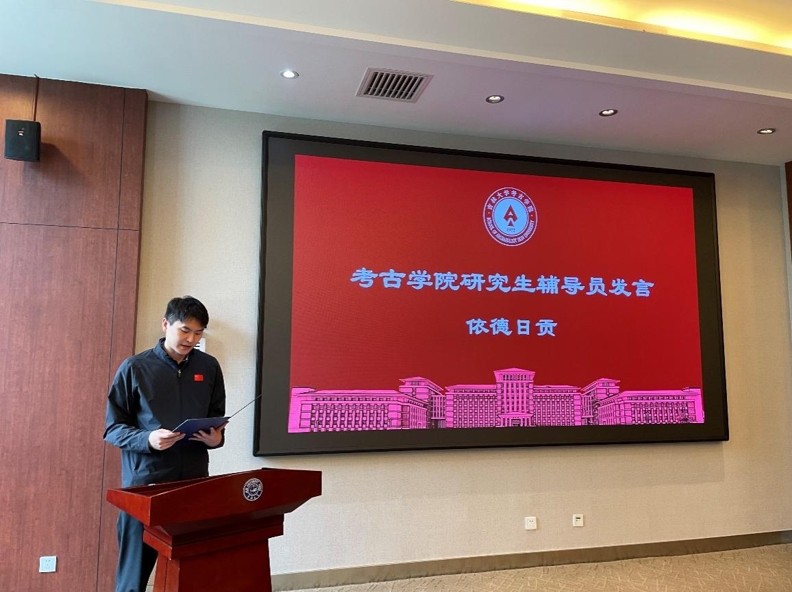 研究生辅导员依德日贡老师发表致辞。他从理论高度阐述了研究生会之于学院师生的重要意义,对第七届研会的工作成就给予高度评价,并对第八届研究生会寄予殷切期望:希望新一届研会成员承前启后,努力工作,锐意进取,再创学院研究生工作的新辉煌!