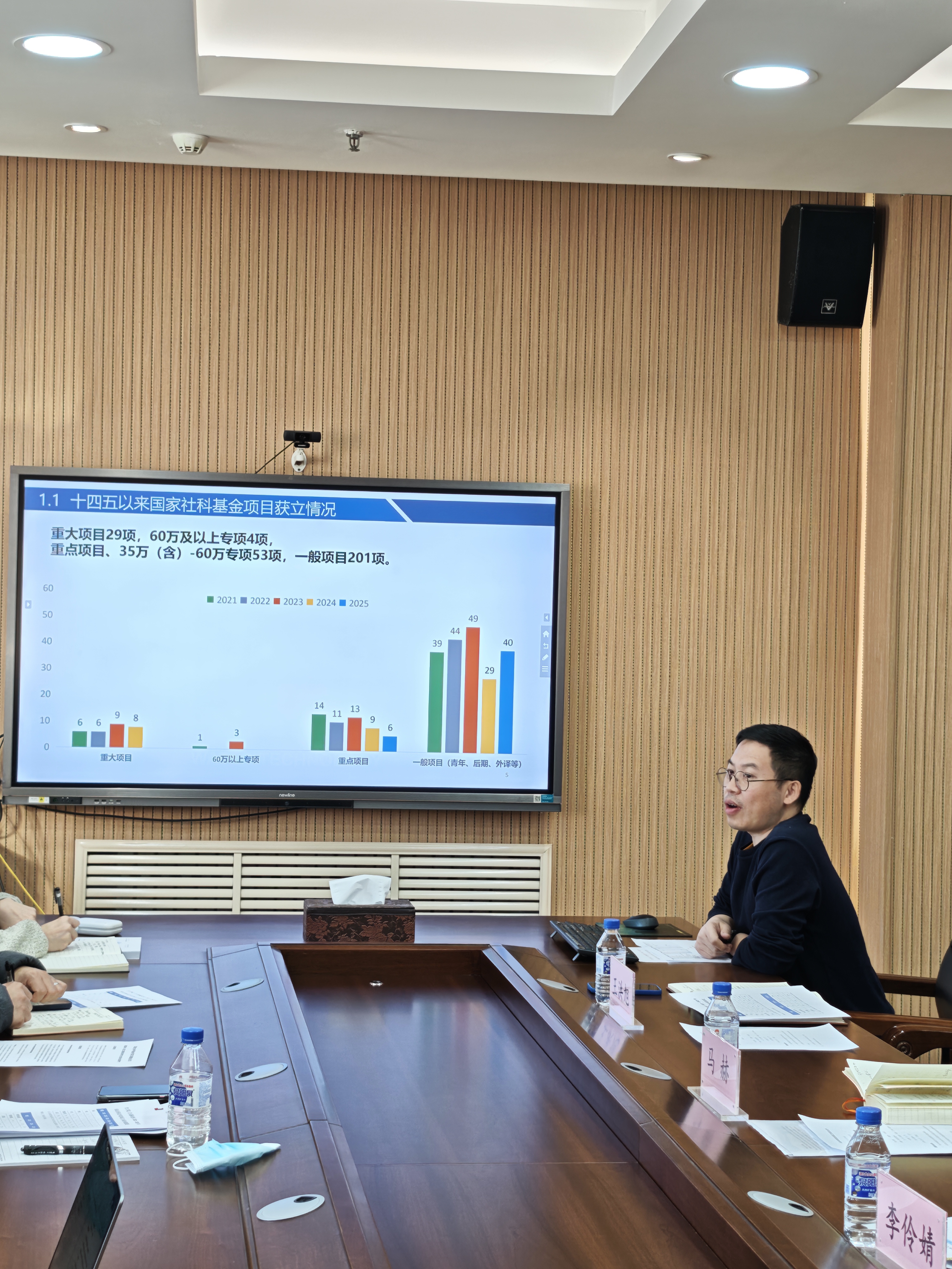 近五年国家社科基金年度项目的获立情况,介绍项目申报相关的各类政策和举措,以及学校在2026年申报工作的时间节点和重点举措,对考古学科申报工作提出了针对性的建议。社会科学研究院李伶婧老师介绍了近五年教育部人文社科项目的申报获立情况和工作中面临的相关问题,提出解决问题的途径和办法。