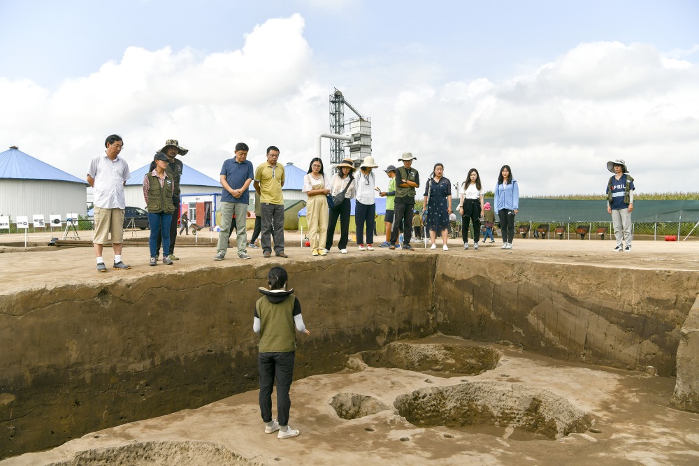 院长赵宾福、党委书记李宏伟、副书记兼副院长侯建峰、学生工作办公室主任杨晨、教学与师资办公室主任王思拓、教学秘书王丽婷、外事秘书于潇濛、科研与研究生办公室科研秘书李叶竹、行政办公室秘书肖飞一行9人来到吉林省双辽市大金山遗址考古工地慰问2017级文物与博物馆班实习的师生们,并为他们带去节日的问候。