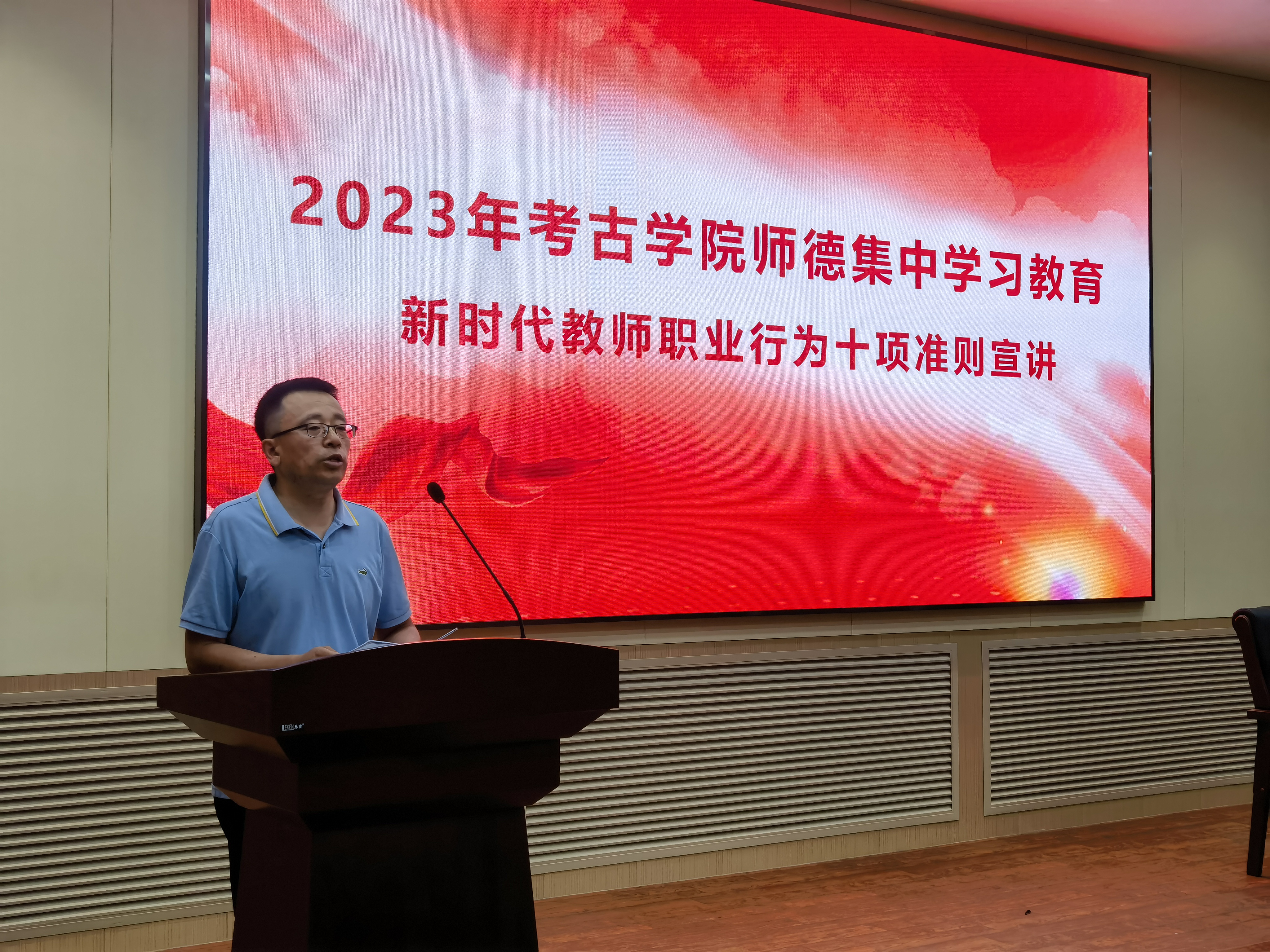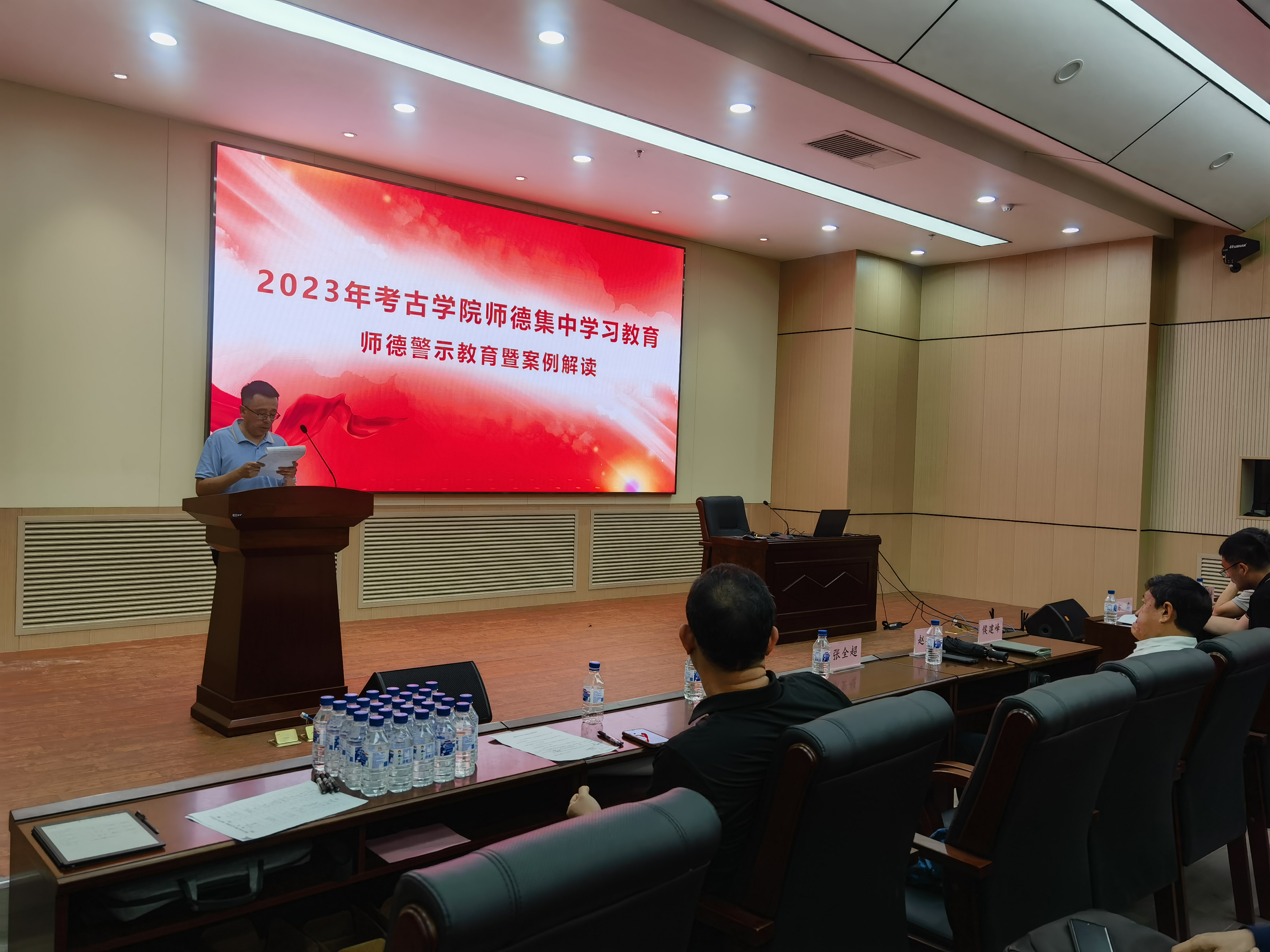 侯建峰带领全体教职工学习了新时代教师职业行为十项准则等系列师德规范,进行了准则宣讲,引导全体教师全面理解和准确把握准则内涵要义,提升全体教师的规则意识。以公开曝光的违反教师职业行为十项准则典型案例为反面教材,进行了案例解读,警示教育全体教职工以案为鉴,做到警钟长鸣。组织教师深刻学习领会习近平总书记关于“四有”好老师、“四个引路人”“四个相统一”、“经师”和“人师”统一的“大先生”等重要指示要求,倡导全体教师将学习成果转化为不断提高自身道德修养、以模范行为影响带动学生成长的生动实践。侯建峰要求全体教师加强党的创新理论学习,重点学习习近平总书记关于教育的重要论述,在深学笃行中提高理论素养、坚定理想信念,夯实坚定拥护“两个确立”、坚决做到“两个维护”的思想根基。