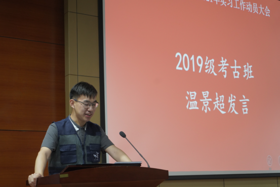 在接下来的学生代表发言环节中,2019级考古班代表温景超、2019级文物与博物馆班代表张灵江分别回顾了过去两年的学习历程,表达了迎接实践教学检验的期待与信心。