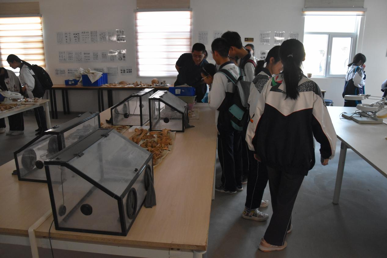 同学们在参观基地的过程中,被基地完备的设施、优良的条件深深吸引,文物研究室的动物骨骼更是激发了同学们的好奇心。