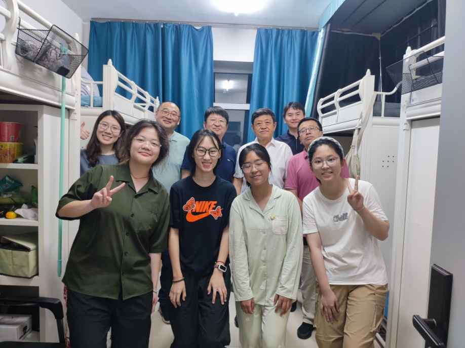 走访期间,室友们正在为来自河北的李畅同学庆祝18周岁生日,学院领导老师为她送上了生日祝福,并与同学们亲切合影。