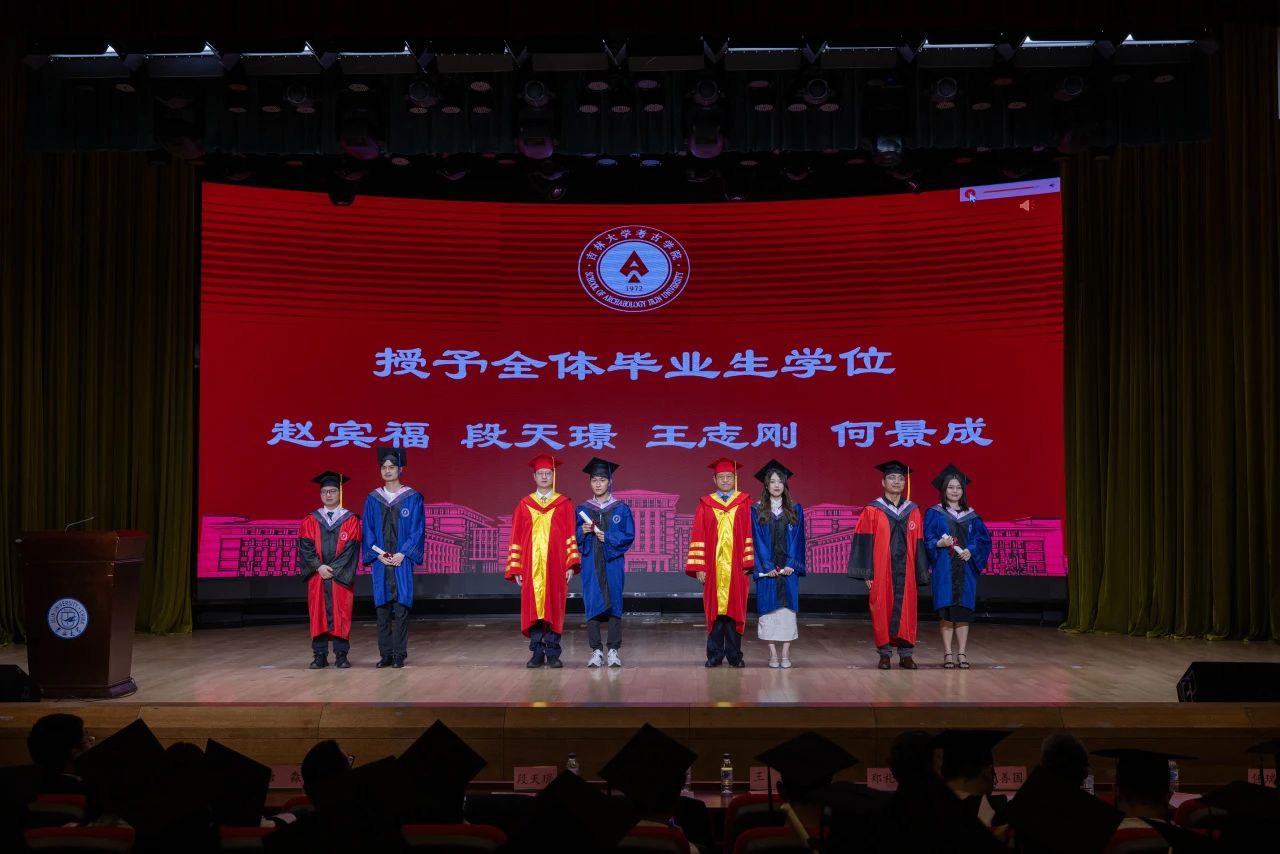 院长段天璟教授、赵宾福教授、学术委员会主任委员王志刚教授与教学委员会主任委员何景成教授共同为学士、硕士和博士毕业生们依次拨动流苏并授予学位,现场气氛热烈而温馨。