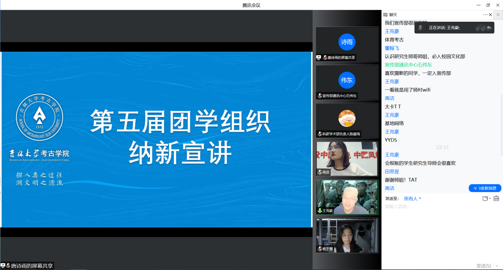 随后,团委各部门负责人以部门过去一年的具体工作经历为主线,结合自己的工作感受,展开了部门介绍。办公室负责人于涵宇介绍了办公室在团建、团课中协调各方的重要作用和在制定活动计划、加强思想建设等方面的特殊作用;组织部负责人钟孟跃说明了部门主要负责的团组织建设、团员教育管理工作,以及完成上述工作所需的认真细致等特质;实践部负责人赵梦竹讲述了部门组织社会实践、传达实践信息等工作内容,展现了工作中培养的社会责任感;宣传部负责人王梓茹分别介绍了通讯中心、新媒体中心在宣传工作中承担的任务,彰显了宣传部体量大、任务多的特点,鼓励对摄影、撰文感兴趣的同学加入。