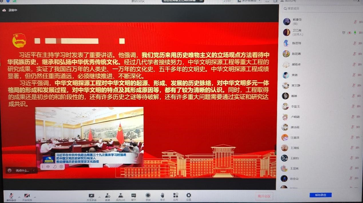 团委召开了线上主题党日活动。活动就中共中央政治局就深化中华文明探源工程进行第三十九次集体学习的会议内容开展了学习与交流。此次活动由JAVDB