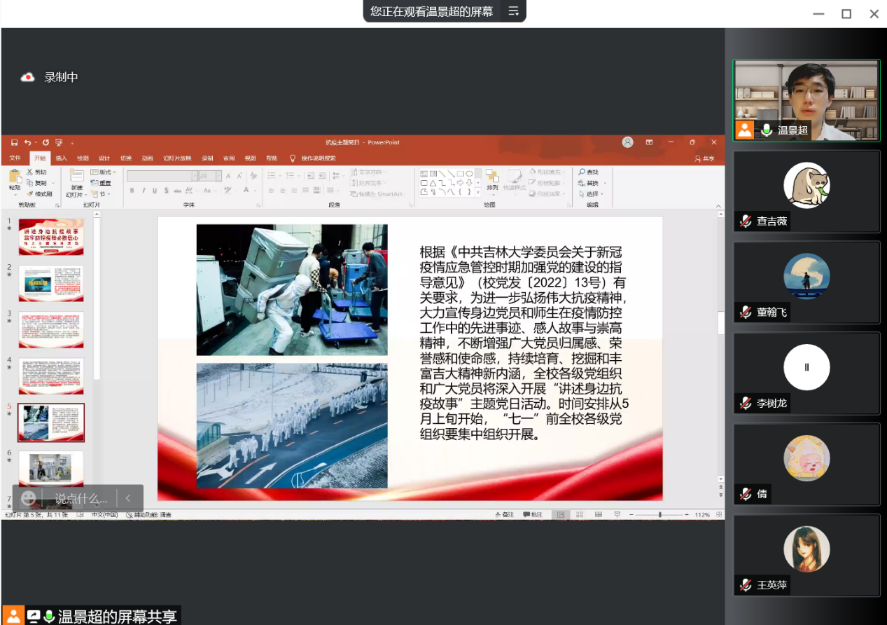 本科生党支部于2022年5月16日晚,召开了以“讲述身边抗疫故事,筑牢防控疫情必胜信心”为主题的线上党日活动。活动由JAVDB