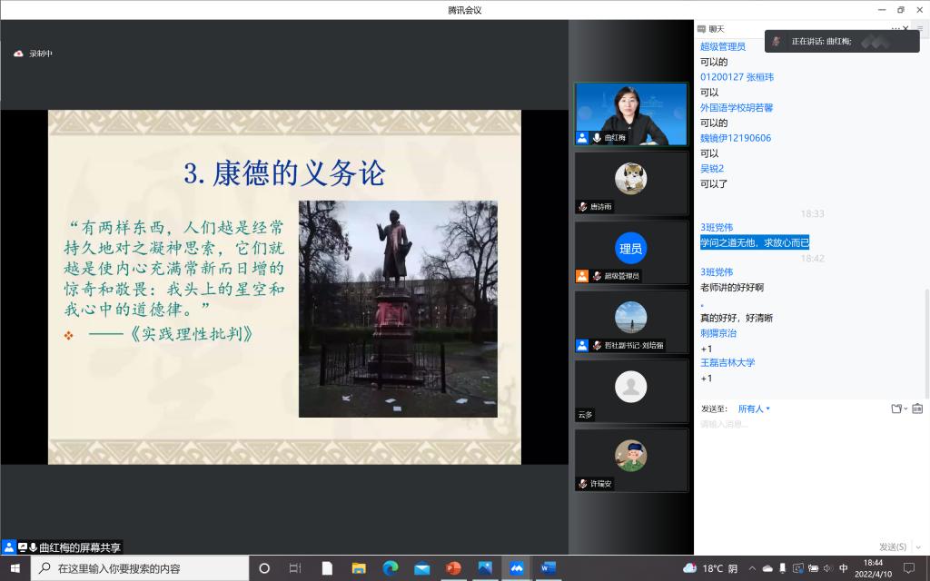 正如苏格拉底所说:“未经反思的生活不值得活”。通过这次的讲座,同学们都明白了只有当一个人勇敢的、持续地运用其实践理性,才能过好自己的伦理生活,过上好生活,好好生活。