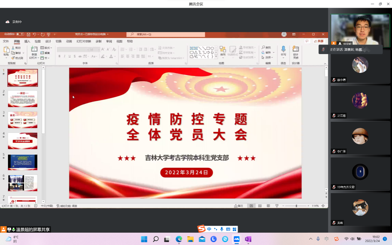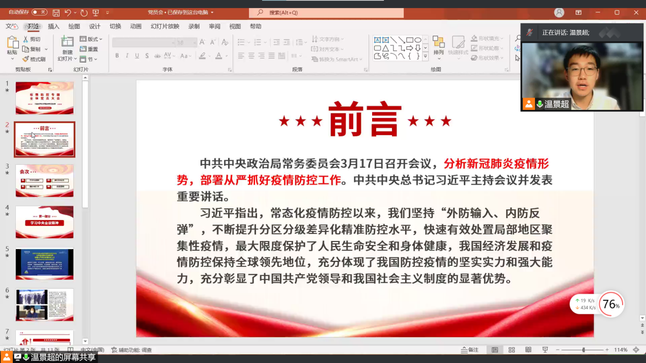本科生党支部按照学院党委“疫情防控”专题扩大会的统一工作部署,于2022年3月24日晚,积极开展了“疫情防控”专题线上主题党日活动,通过学习相关讲话,体会精神,武装头脑,坚定信心,共克时艰。JAVDB