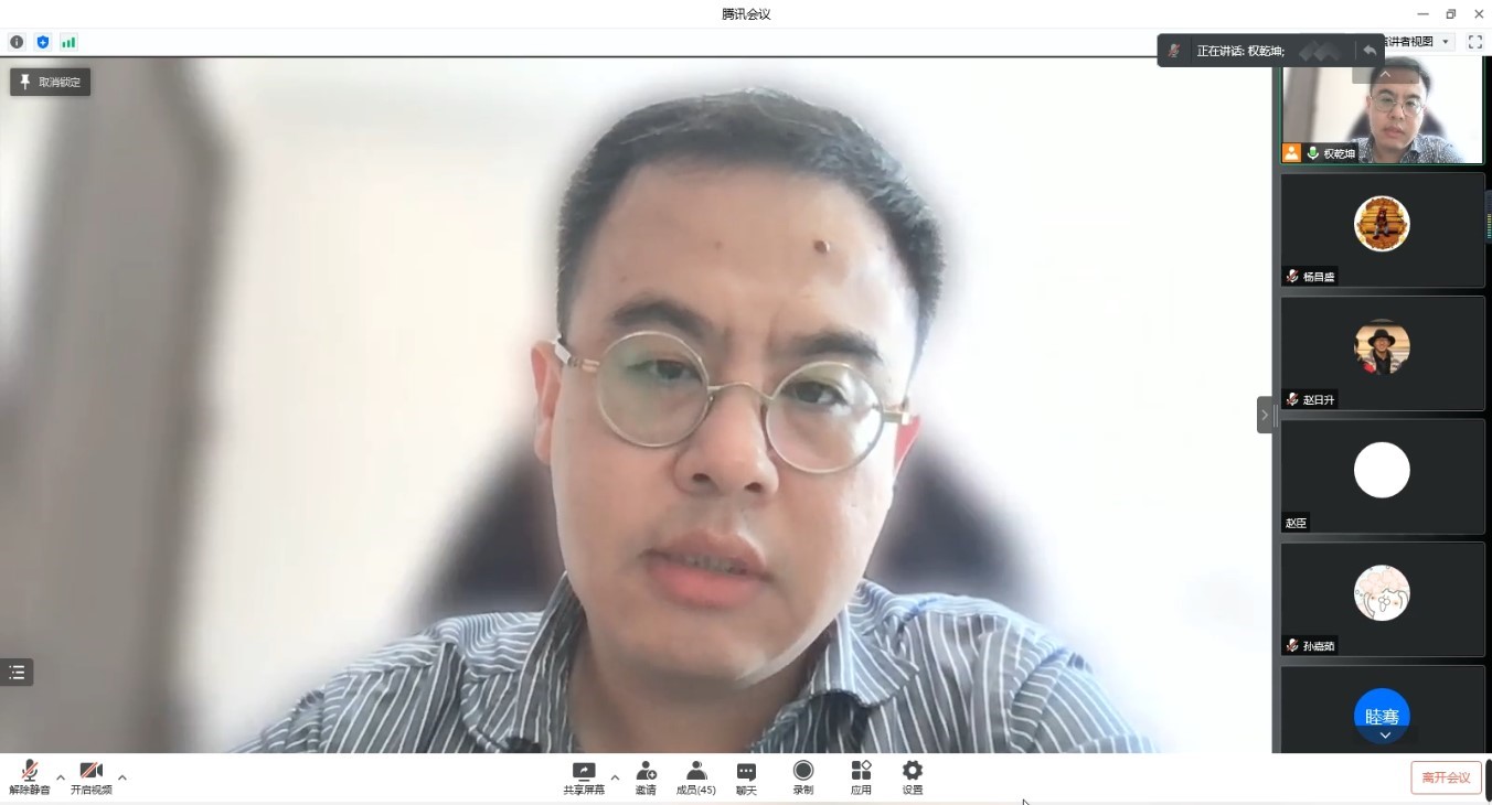 会上,权老师首先结合当前疫情形势,为同学们解读了现阶段学校疫情防控工作要求,对封校后同学们产生的困惑情绪进行了有效的疏导。随后,权老师结合自身求学及教学经历,从论文主题、文献引用等多个方面讲解了毕业论文写作的注意事项,并围绕同学们毕业后应该选择什么样的人生道路这一问题进行了探讨,为大家的升学与就业提供了有益的参考。会议最后,权老师寄语同学们要珍惜彼此之间大学四年的美好情谊,努力在未来实现自己的人生目标。
