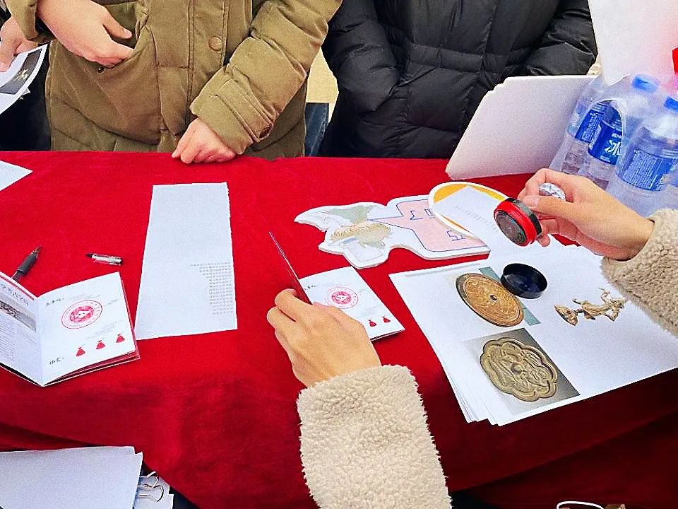 活动当天,萧瑟的秋风平添了几分寒意,但这丝毫不曾影响现场的热烈气氛。从上午7时起,近50名现场工作人员以最饱满的热情投入到搬运整理桌椅、宣传板、医药箱、口罩等活动物资中,并向各打卡地点分发展板、易拉板、打卡本、打卡地图、徽章、钥匙扣等彰显考古特色与百年党史的活动道具与文创纪念品。