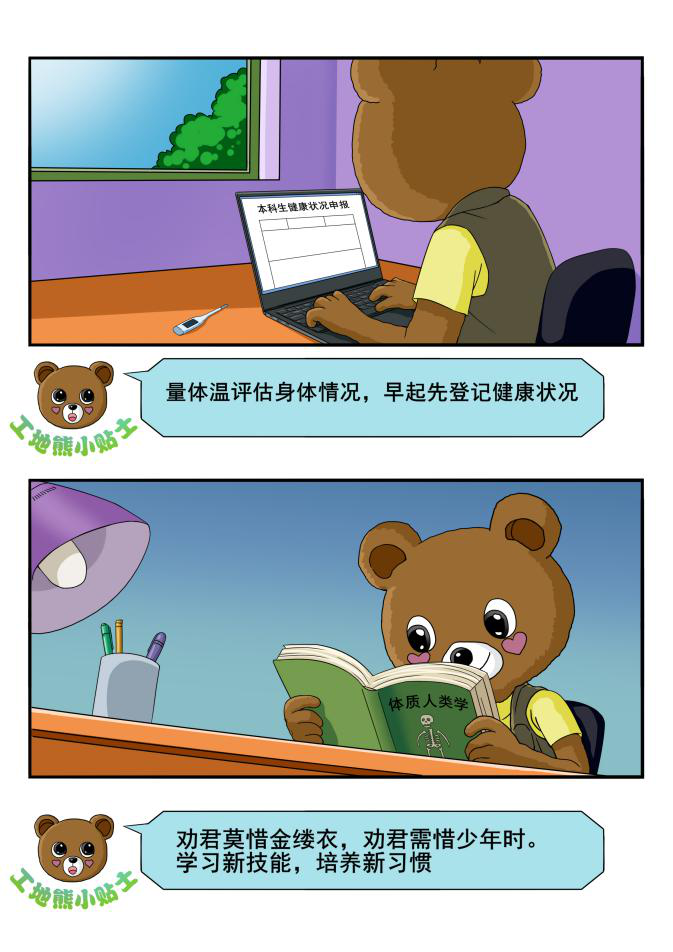 各团支部围绕青年学生踊跃投身建设祖国的伟大成就、不畏艰险抗击疫情、决胜全面小康、决战脱贫攻坚等主题,制作了相关海报6张,编辑绘画工地熊抗疫漫画,并依托学院新媒体平台进行宣传报道。