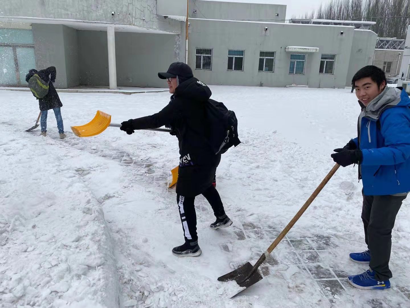 正值降温,今天同学们感受到了这个冬天以来最低的气温,冰雪也凝结得十分坚硬,但同学们的热情却丝毫没有减退,在入党积极分子们的带领下,经过一个半小时的团结协作,大家将博物馆门前的道路清理得干干净净。行人踏上不再被积雪占据的道路,脚步变得轻快,不再被泥泞所困扰,同学们看到后都感觉十分欣慰。清雪结束后,同学们又发挥自己的创造力在博物馆门前堆起一个小雪人,记录下用劳动服务大众所收获的快乐与友谊。