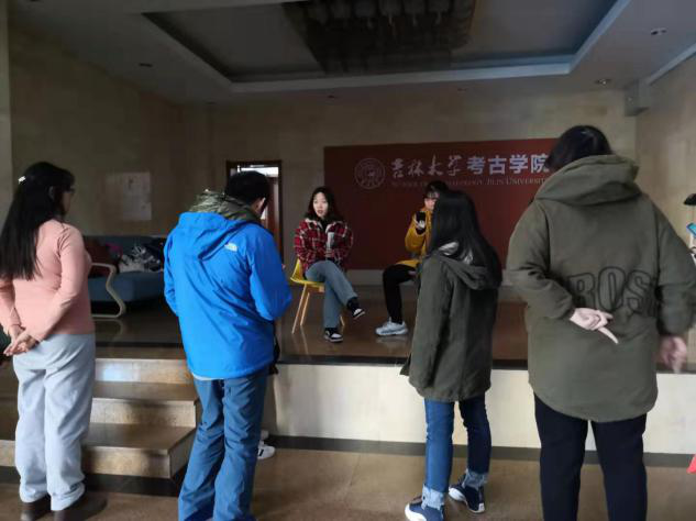 2019年11月12日晚上6点,迎新晚会所有演职人员在行政楼一楼进行紧锣密鼓的彩排。杨晨老师亲临现场进行指导,对四个歌曲节目,两个曲艺节目和一个朗诵节目在细节上进行打磨和雕琢,丰富了节目的内容和连贯性。虽然场地有限,但排列氛围热烈,所有演职人员非常重视此次彩排。