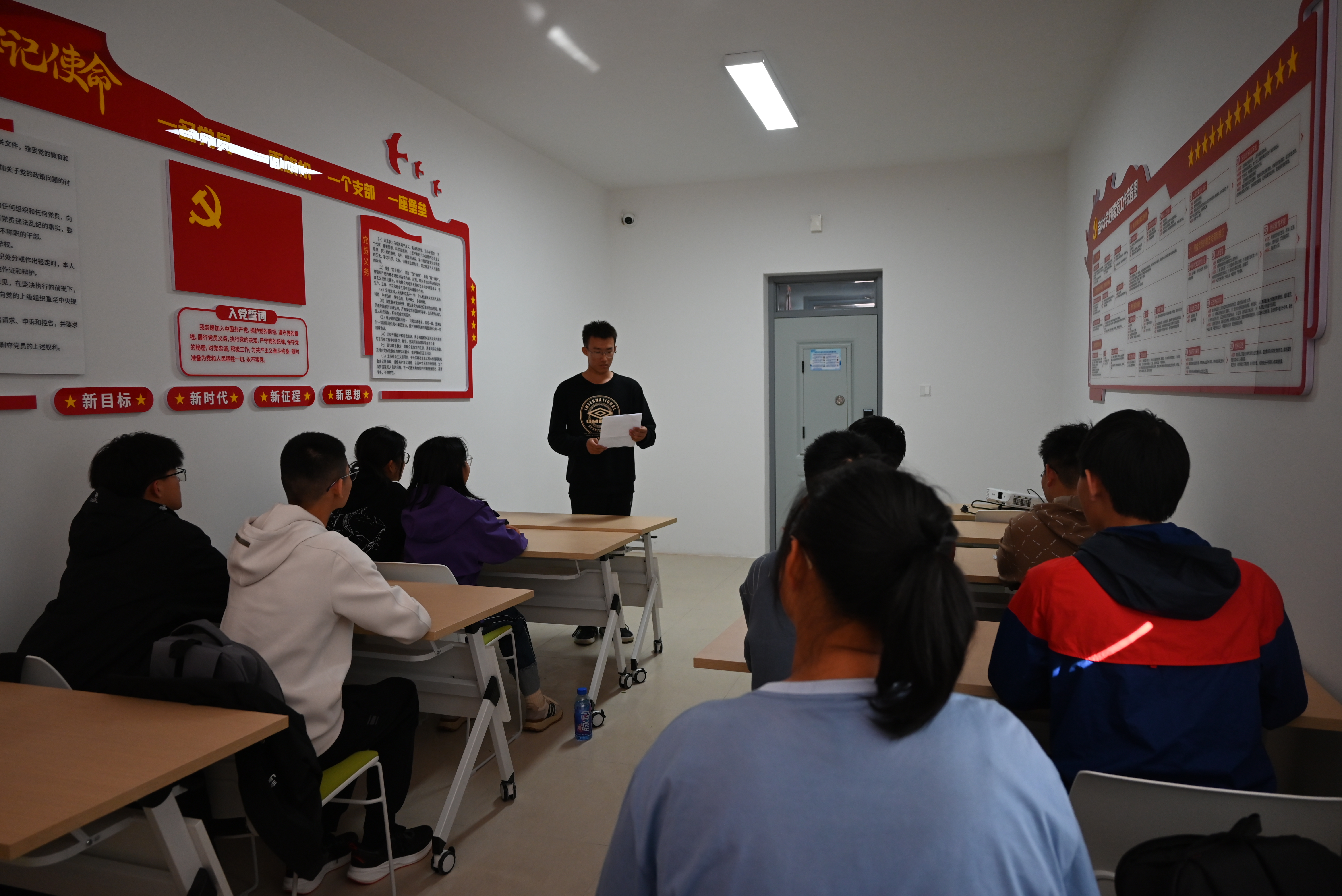 古文字班于大学城二公寓党团活动室举办“青春向北,吉人天下”主题班会。2024级古文班班主任单育辰老师、辅导员马嘉男老师和全体本科新生参加本次班会。班会由古文字班班长王禹堯主持。