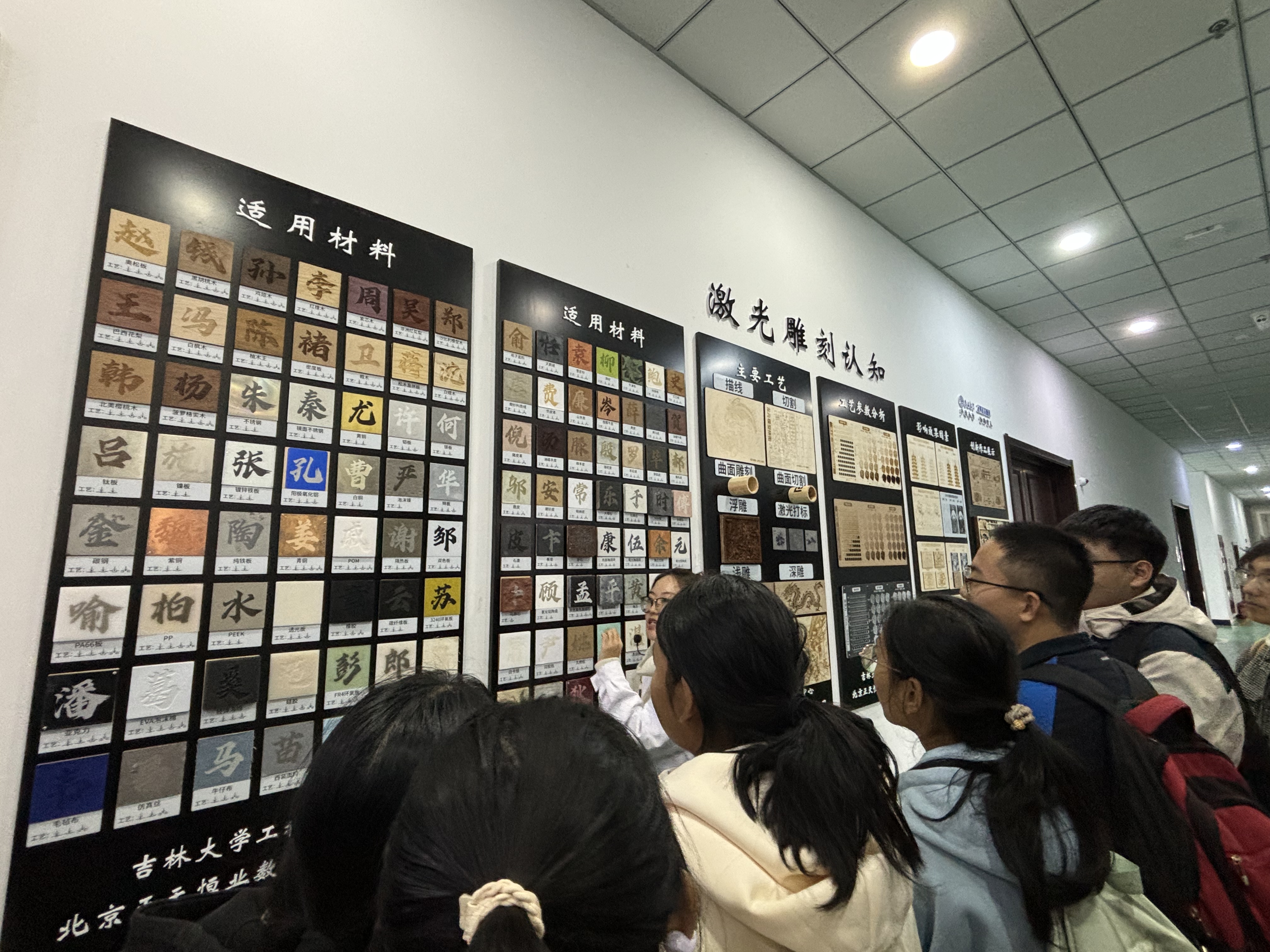紧接着来到激光制造中心,先进的激光切割机、琳琅满目的激光制木质浮雕、绘画乃至文字,令同学们倍感惊讶。