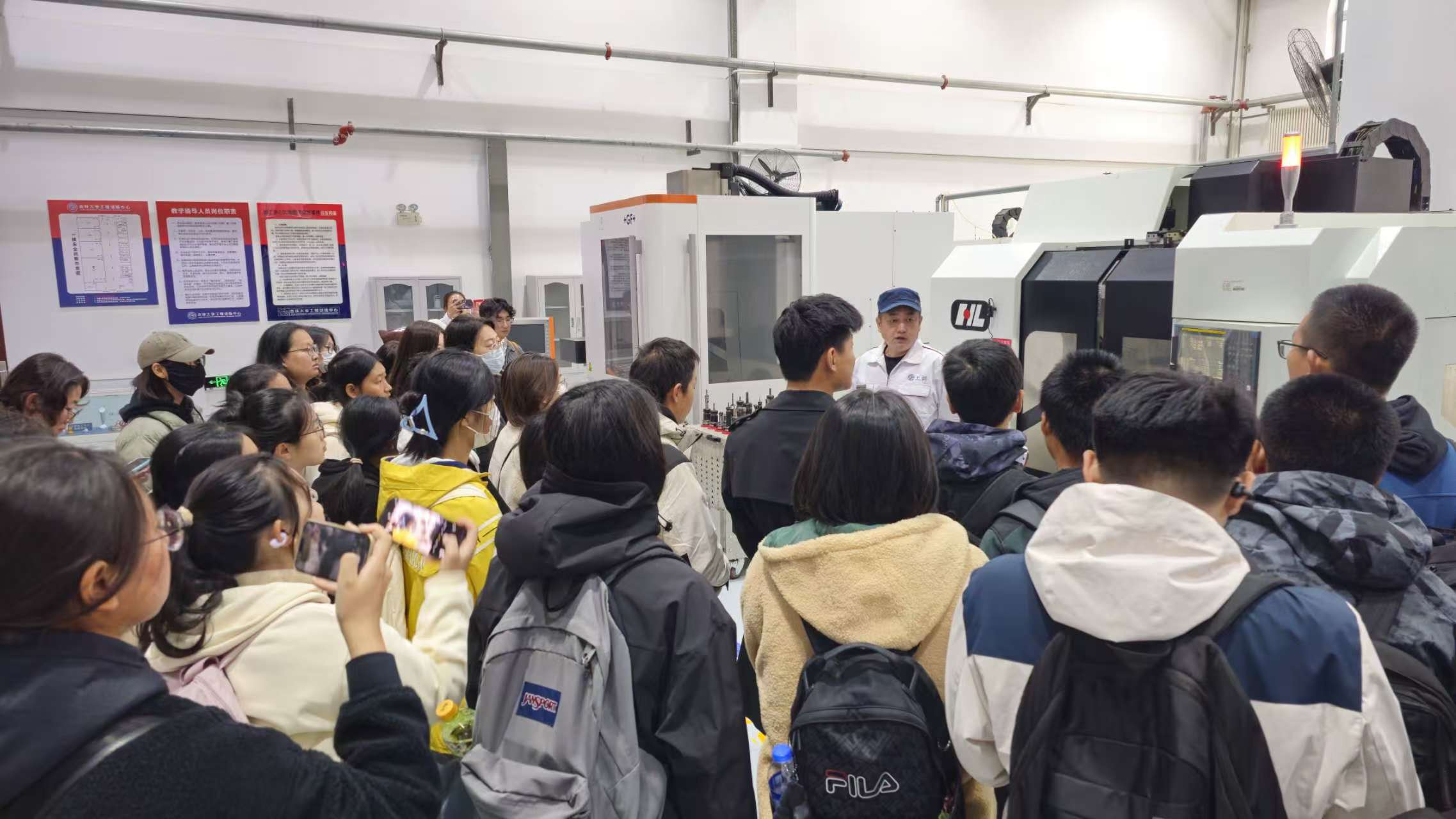 走进专业而现代化的工程训练中心大楼,同学们依次前往了金属加工中心、智能原材料仓库、激光制造中心、数控车实训室、3D打印中心等实验室参观学习。