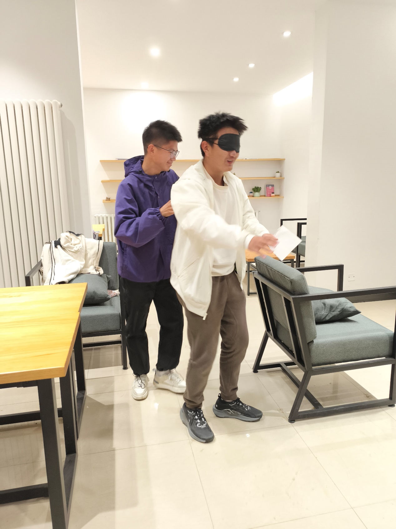 我印象最深的是“信任之旅”环节,我作为引导者,与杨钰琦同学共同完成了这个活动。在刚开始,我的引导小心翼翼,杨钰琦同学也不能完全地信任我;但随着活动不断推进,我能感受到我们之间的默契在不断增加,我仅仅是简单地拍击他,他就能够信任我去大胆地迈步,越过面前的障碍。最终,我们顺利地完成了这个项目。通过这次团体心理辅导活动,我对心理健康有了新的认识,它不仅仅体现在个人对自己内心的调适,更在于个人在团体中获得认可并向他人回馈积极的情绪,从而营造一个健康的集体氛围,并在这个良性集体中成长、蜕变。