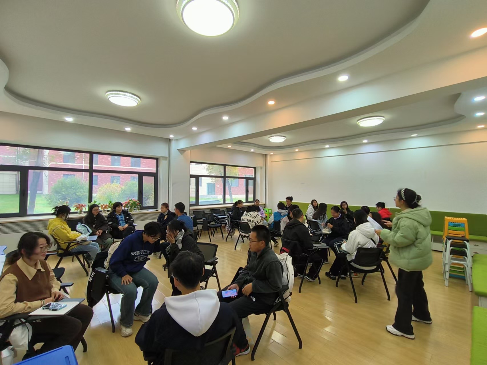 朋辈心理辅导员陈瑞雯主持,辅导员马嘉男老师和2024级全体新生参与。